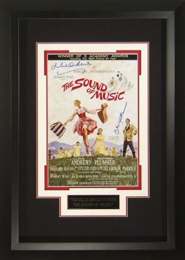 The Sound of Music is a 1965 American musical drama film produced and directed by Robert Wise, and starring Julie Andrews and Christopher Plummer. The film is an adaptation of the 1959 Broadway musical The Sound of Music, composed by Richard Rodgers with lyrics by Oscar Hammerstein II. By November 1966, The Sound of Music became the highest-grossing film of all-time-surpassing Gone with the Wind-and held that distinction for five years. The Sound of Music received five Academy Awards, including Best Picture and Best Director. This is an signed Publicity Masterprint 11x17 inch movie poster with museum Quality Leather Framing as shown to an overall size of 22x30. Julie Andrews and Christopher Plummer have hand signed this poster. The perfect addition to complement any Home Theater Collection. Witnessed, Examined, and Certified Authentic (Lifetime) by Millionaire Gallery, Inc.