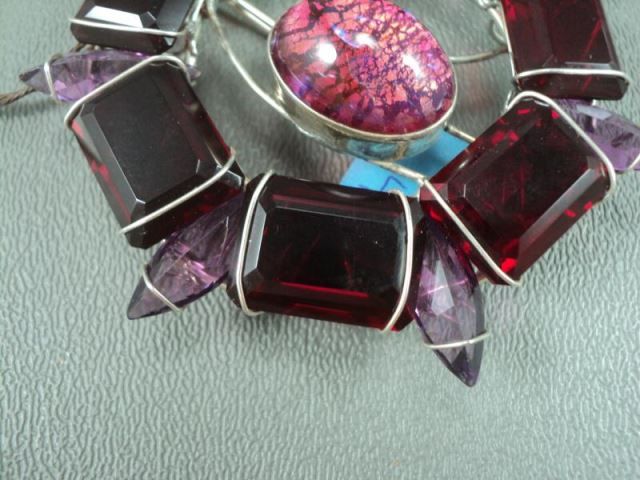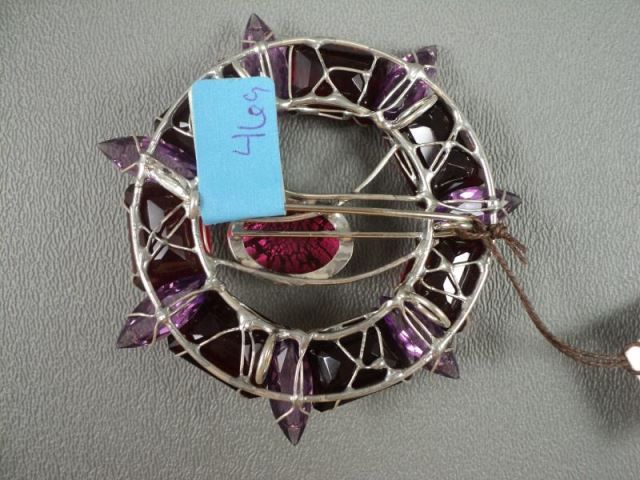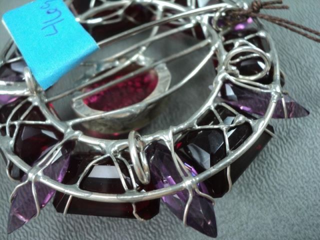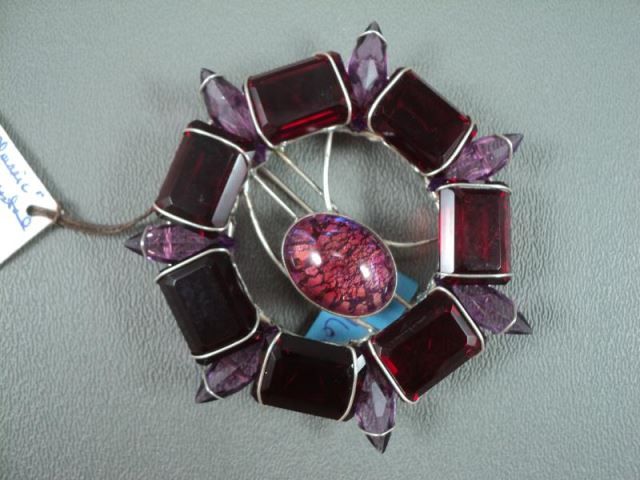 Julie Fenton Young " Deep Ruby Classic" Pin Hand Cut Crystal & Foiled Glass on Sterling Silver Weigh