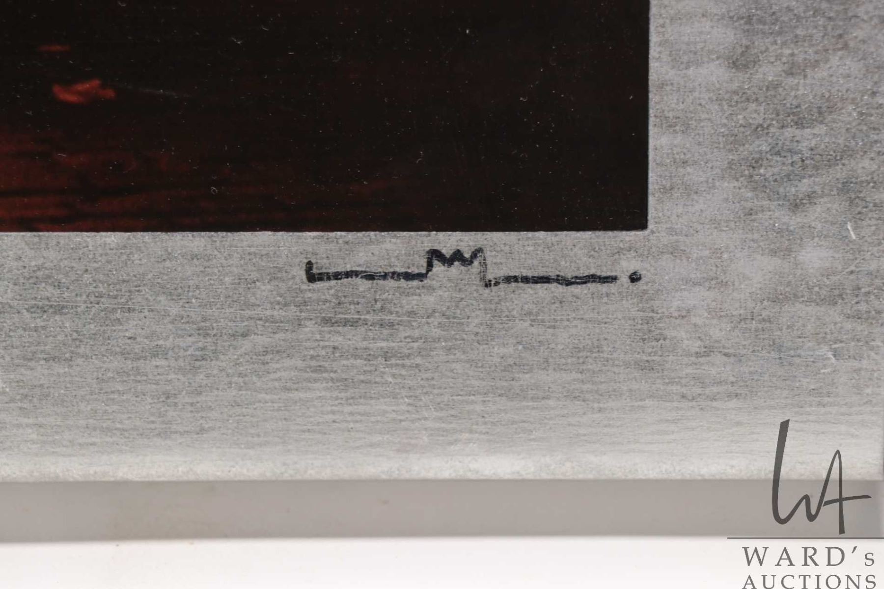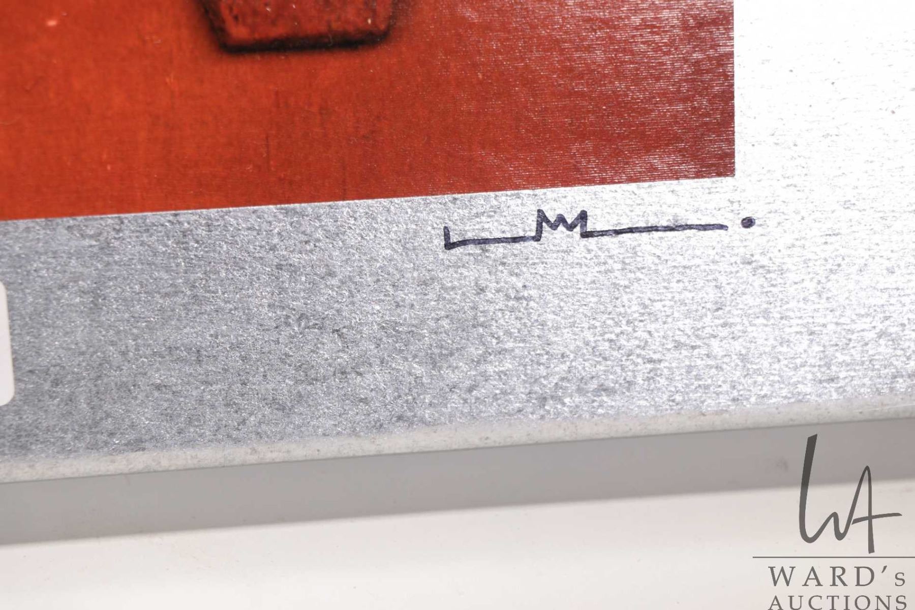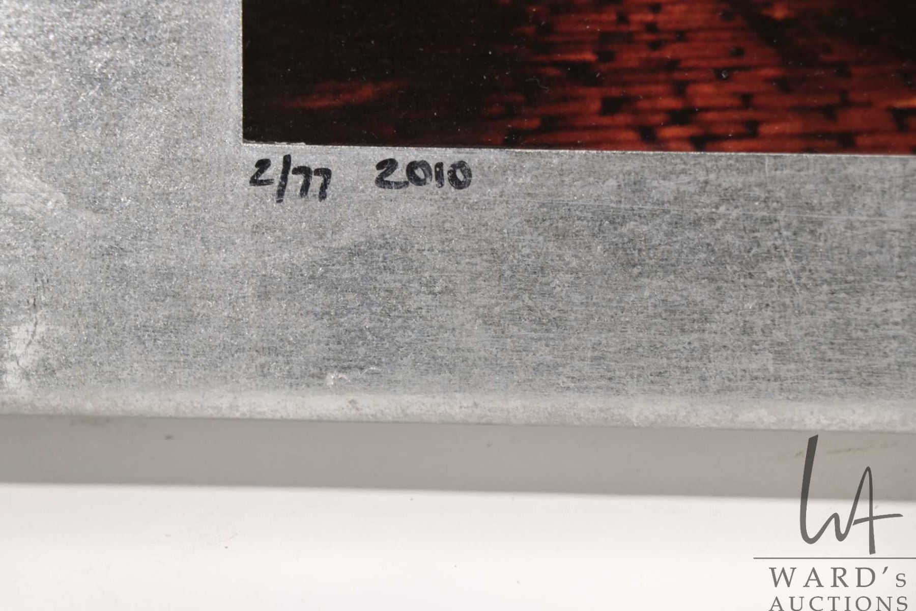 Julie Witten-Land, limited edition prints applied to formed sheet metal including " Scribble ( in Denmark) 2010, 11/17 "Past to Present" 2011, 11/77 and "Stillness Munich" 2010, 2/77, all signed by artist and each approximately 17" X 12"