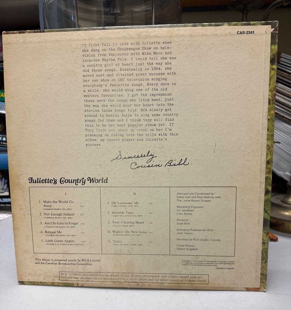 Juliette - Juliette's Country World Autographed Vinyl LP Record CAS-2351
