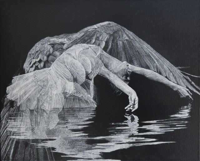 Artist: Julius Cesar Delgado - Title: Dance of the Birds 9 - Medium: Fine Art Giclee on Canvas - Edition Size: 199 - Signature: Hand Signed and Numbered - :Image Size: Approximately 16 inches x 20 inches - Unframed on Unstretched Canvas - Details: This work comes with a Certificate of Authenticity - Biography: Julio Cesar Delgado?s works are most notable for the influenceÿof iconicÿstyles developed in the 15th century by Russian monasteries.ÿHis works go farÿbeyond realistic and hyper realistic attempts, but rather center around the concept ofÿconverting his drawings and paintings into ancient figures.ÿDelgado?s work doesÿnot focus on one subject but will rather represent many subjects such as the humanÿfigure, nature, life,ÿand death.ÿDelgadoÿworks in numerous mediums includingÿpencil, charcoal, oil, and acrylic.