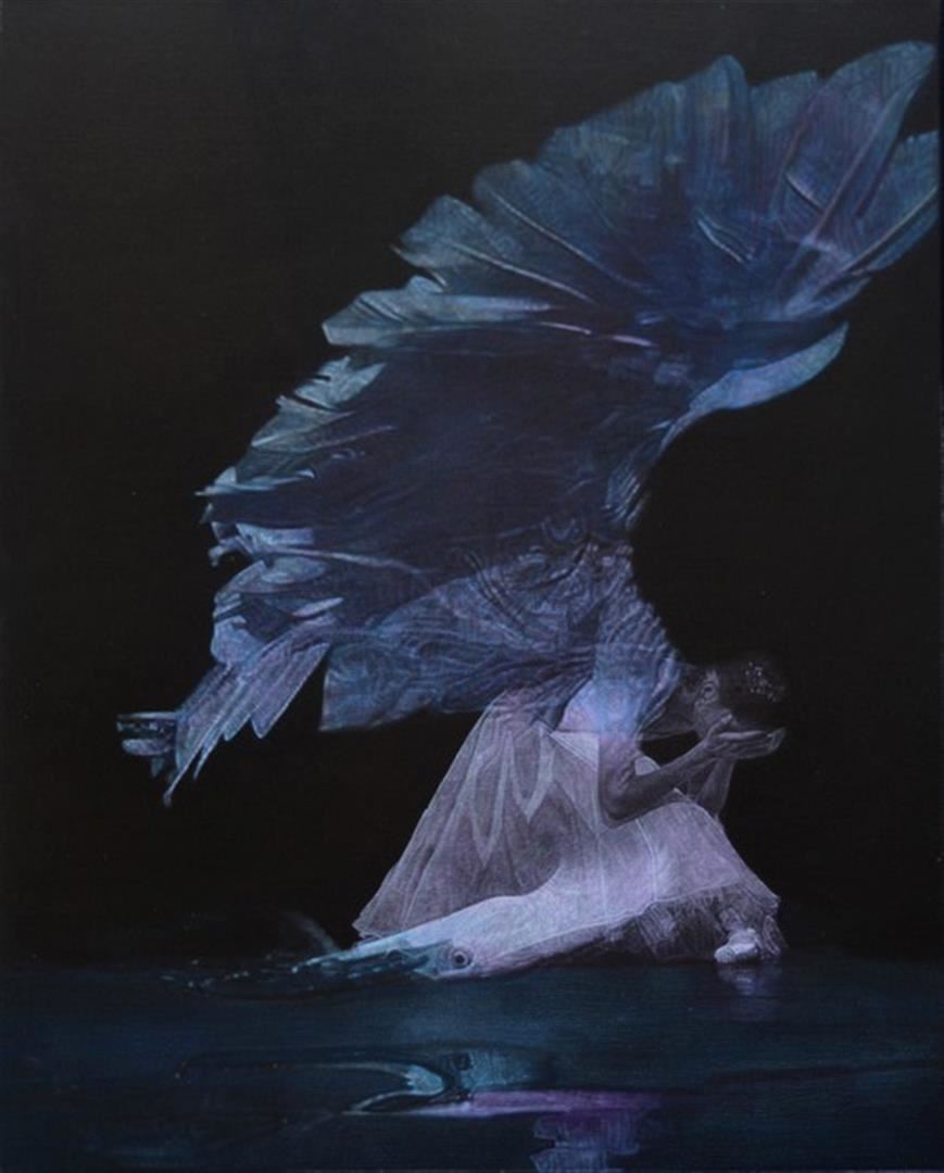Artist: Julius Cesar Delgado - Title: Becoming Her - Medium: Fine Art Giclee on Canvas - Edition Size: 199 - Signature: Hand Signed and Numbered - :Image Size: Approximately 20 inches x 16 inches - Framed: Unframed on Unstretched Canvas - Details: This work comes with a Certificate of Authenticity - Biography: Julio Cesar Delgado?s works are most notable for the influenceÿof iconicÿstyles developed in the 15th century by Russian monasteries.ÿHis works go farÿbeyond realistic and hyper realistic attempts, but rather center around the concept ofÿconverting his drawings and paintings into ancient figures.ÿDelgado?s work doesÿnot focus on one subject but will rather represent many subjects such as the humanÿfigure, nature, life,ÿand death.ÿDelgadoÿworks in numerous mediums includingÿpencil, charcoal, oil, and acrylic.