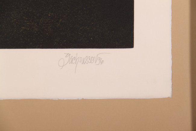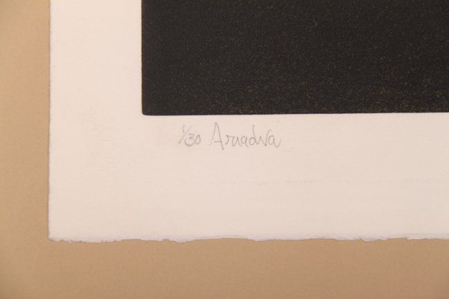 Julio Zachrission (b Panama City, 5 Feb 1930), "Arcadia", 1996, Lithograph, 24 inches x 38 inches framed. Panamanian printmaker and painter, active in Spain. Provenance: Artist Certificate of Authenticity. He studied under Juan Manuel Cede?o at the Escuela Nacional de Pintura in Panama City and from 1953 to 1959 at the Instituto Nacional de Bellas Artes in Mexico City. In 1961 he moved to Madrid, where he began his important work at the Real Academia de Bellas Artes de San Fernando. Zachrisson?s etchings, drypoints, lithographs and woodcuts tell stories, mock tradition and criticize society, encompassing subjects as varied as the circus and the myth of Icarus. In works such as the Death of Chimbomb? (1963; New York, MOMA) he depicts life with humour and satire in a cruel and even tragic vision. His fantastic world is peopled by an entourage of monsters, witches and grotesque figures drawn from Panamanian urban folklore, Spanish literature, classical mythology and personal experiences. Zachrisson?s paintings, produced since the 1970s, tend to be less detailed than his etchings but are equally biting in their use of irony, secual explicitness and references to his Panamanian background. Formally, his paintings emphasize colour and design over volume, with flat intense hues, hard edges and nearly invisible brushstrokes, as in Cazanga (1984; Panama City, Mus. A. Contemp.). Zachrisson?s work has been widely exhibited, both in Latin American and in Spain, where in 1996 he was awarded the prestigious Goya-Arag?n Prize. Photos are part of the description representing the condition report. Pangaea Auctions urges Bidder's to view all attached photos.