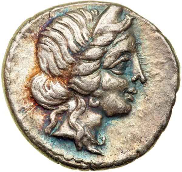 Julius Caesar, d. 44 BC. AR Denarius struck 47-46 BC at the mint moving with Caesar in North Africa. Diademed head right of Venus. Reverse: Aeneas walking left, carrying Anchises and palladium. Cr. 458/1; Syd. 1013; RSC 12. Choice Very Fine.