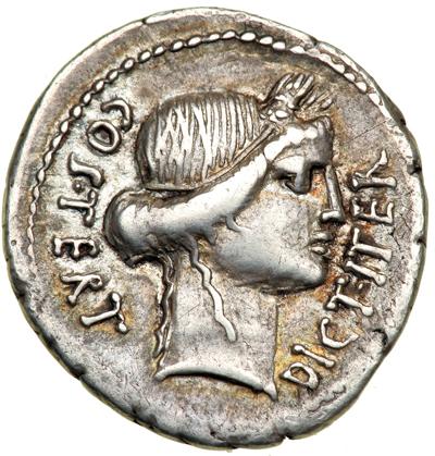 Minted for the African campaign, waged against Scipio and the supporters of Pompey, that culminated in the battle of Thapsus in 46 BC.