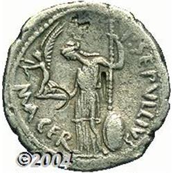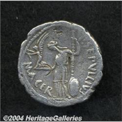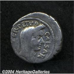 <B>Julius Caesar.</B></I> February-March, 44 B.C. AR denarius (18 mm, 3.41 g). P. Sepullius Macer, moneyer. Laureate and veiled head of Caesar right / Venus standing left, holding Victory and sceptre set on shield. Crawford 480/13; HCRI 107d; Sydenham 1074; RSC 39. Toned Fine, bankers' marks and small test cut on reverse. <BR><BR><B>Important notice:</B> Heritage usually auctions material at the rate of 200-250 lots per hour. On some occasions eBay Live bid software or the Internet may not be able to keep up with the pace of the auction. We recommend placing a realistic absentee bid now as insurance to avoid disappointment. Occasionally the auctioneer may eliminate or reject an eBay Live bid, and the auctioneer may also reopen a lot after the close of the eBay live bidding (usually because we missed an audience bid), and may reject your bid even if it shows you as the winning bidder. By bidding via eBay Live, you agree that Heritage may award the lot to another bidder at its sole discretion under the circumstances described above or any other reasonable circumstances. Since eBay bids are not shown to us until we open the lot on the floor, we treat those bids just like floor bids. In most cases the floor responds before the eBay bid is presented to us, due to Internet lag time, so for consistency we have made it a policy that floor bids are always considered first over tie eBay live bids. Also please note that all Heritage lots purchased through eBay Live carry a 20% Buyer's Premium. Please make sure you read the Terms and Conditions before you bid.