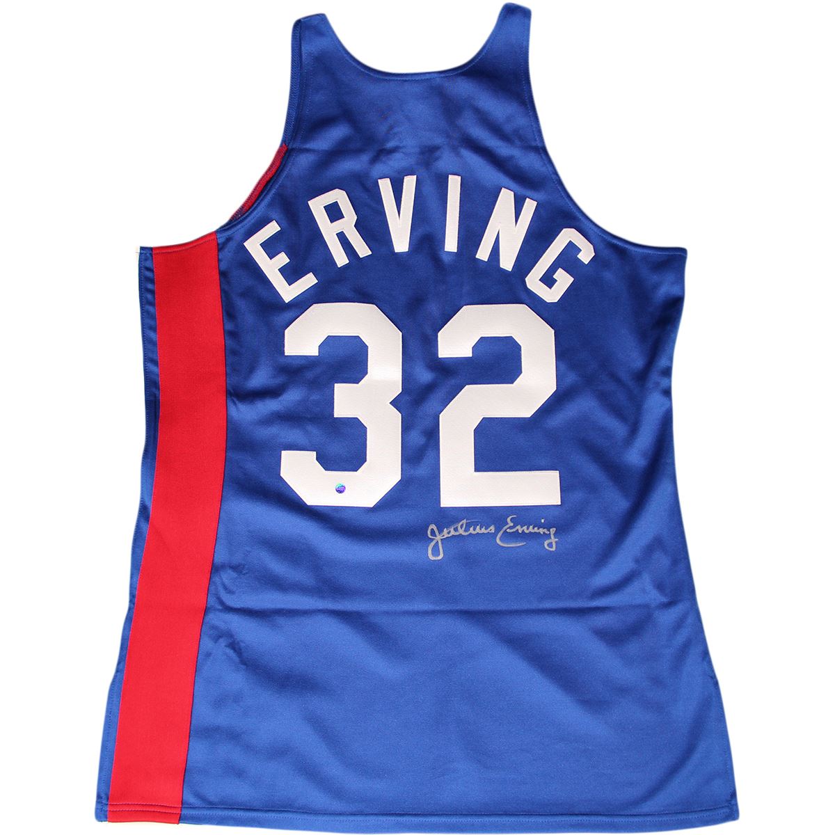 Julius Erving Signed New York Nets Authentic Blue Mitchell and Ness Jersey (Signed In Silver)