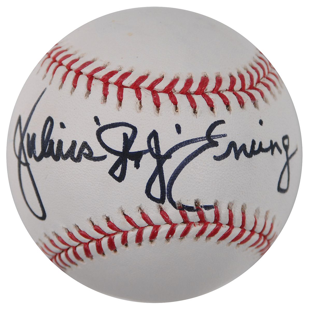 Official Rawlings Major League baseball signed in black felt tip on the sweet spot, “Julius ‘Dr. J’ Erving.” In fine condition.
