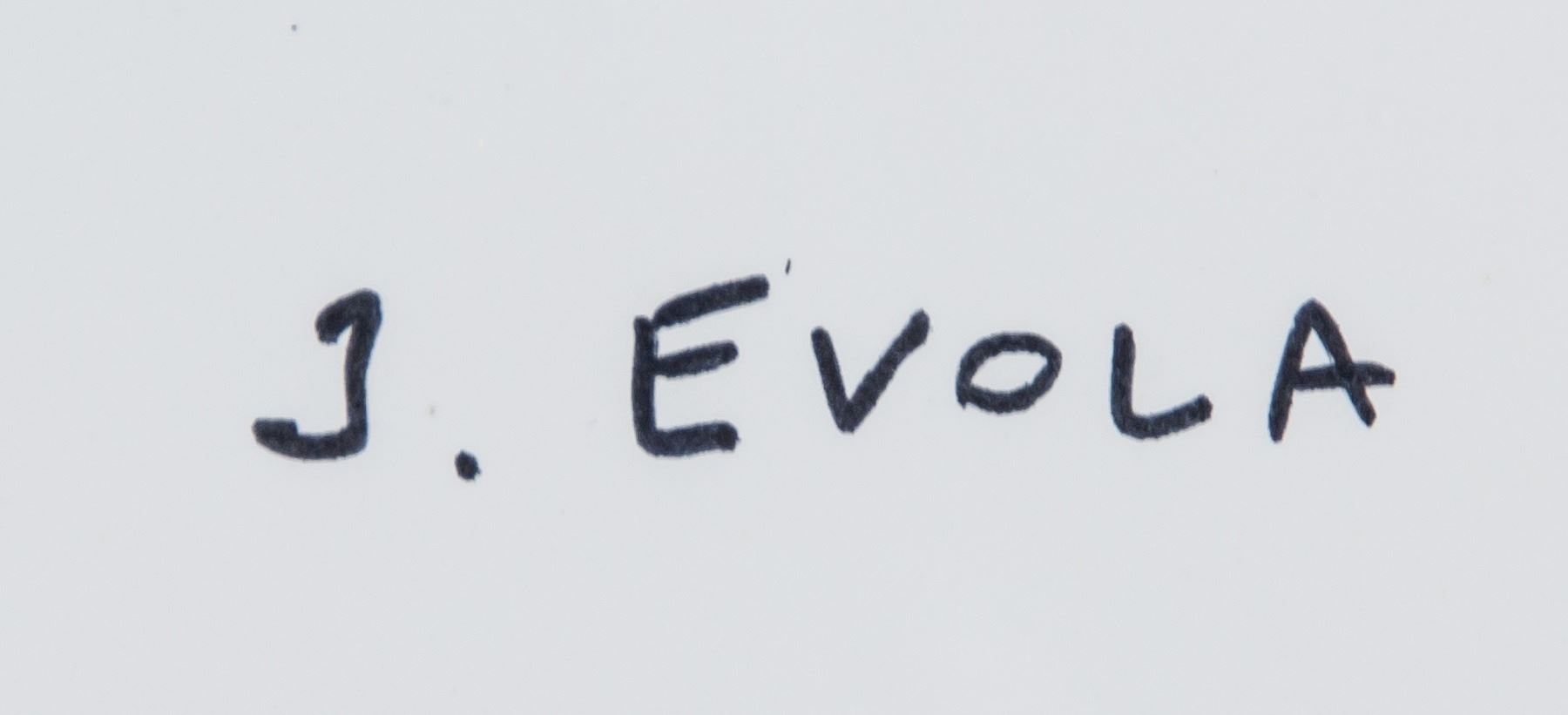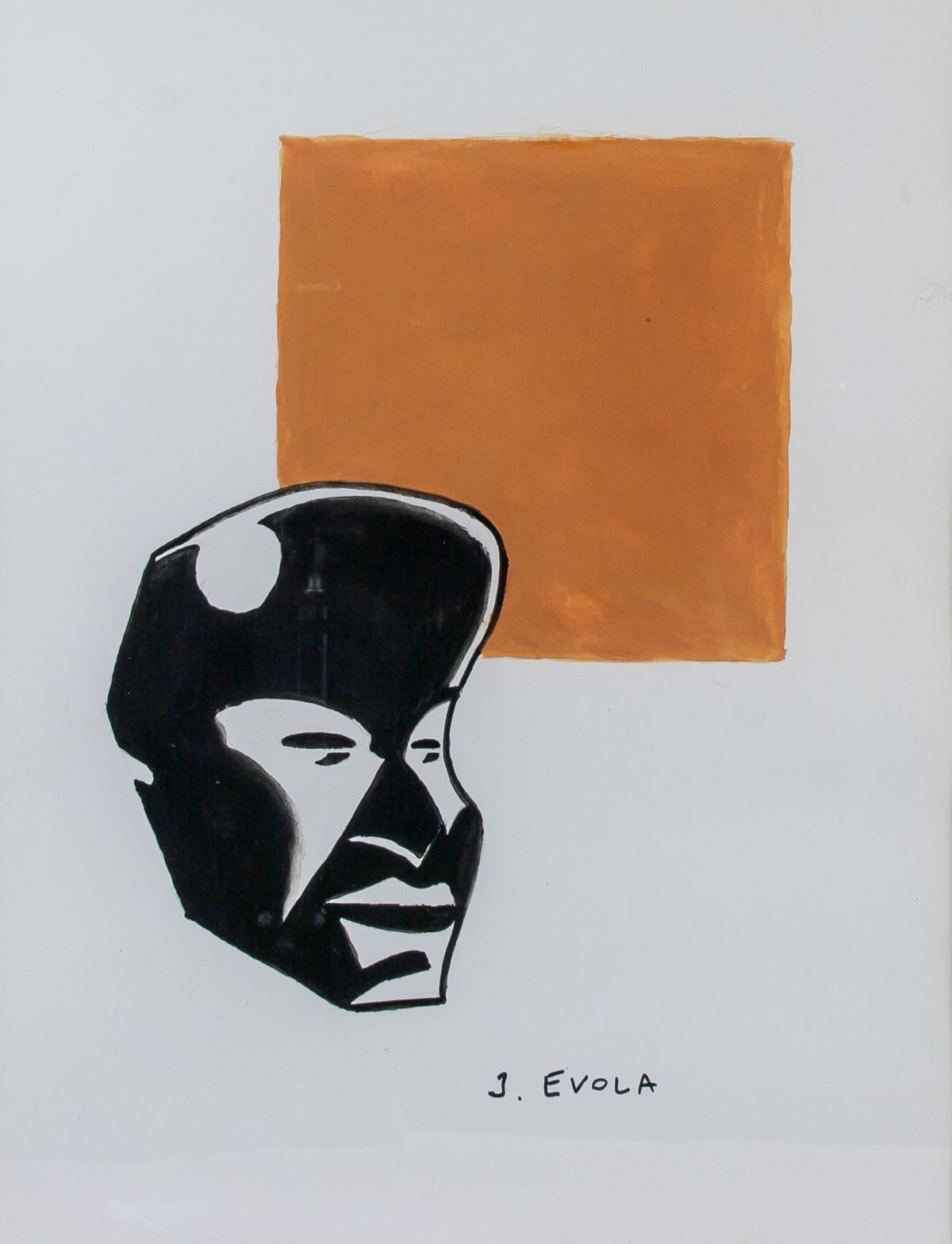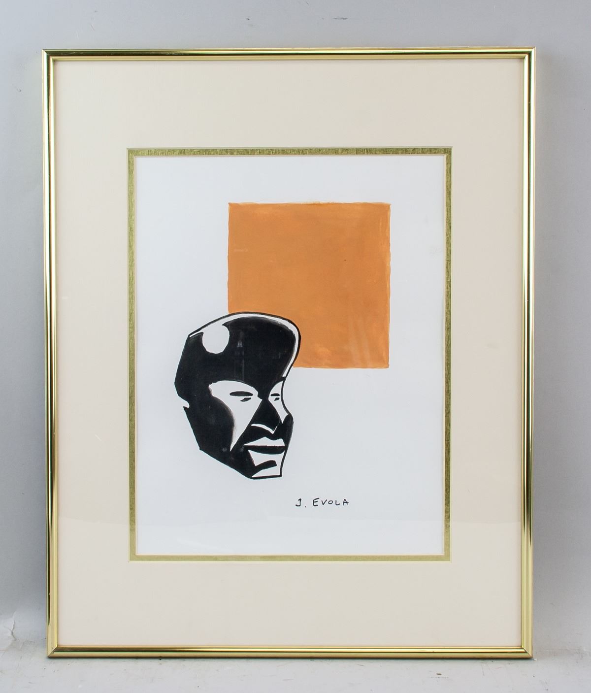 Mixed media on paper, framed. Featuring a portrait. Signed J. EVOLA on the lower right corner. Attributed to Julius Evola (1898-1974, Italian). 34 x 26 cm (13.4 x 10.2 inches). Frame size: 52 x 42 cm (20.5 x 16.5 inches). Provenance: This lot carries limited provenance from a Southern Ontario estate
