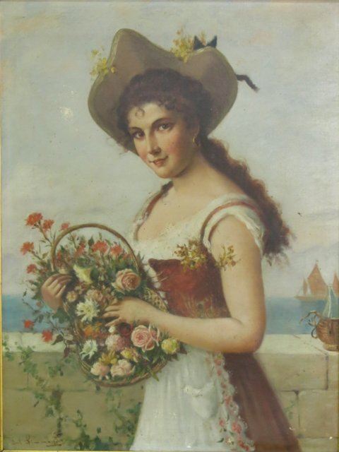 Oil on canvas. Framed. Signed lower left. Julius Simmonds, German (1843-1924). Approx. 19" H x 14" W unframed, 27" H x 22" framed. Surface damages.