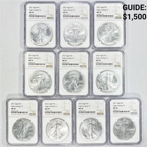 (10) 2021 TY2 American Silver Eagles NGC - MS70
