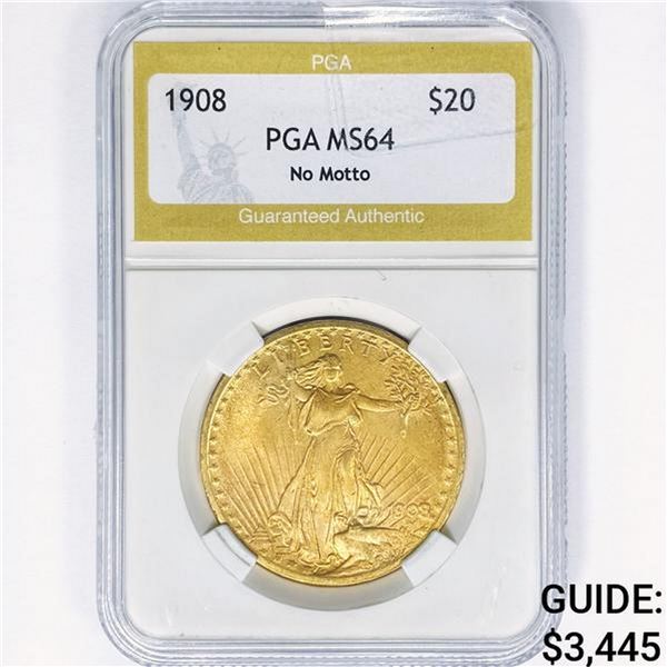 1908 $20 Gold Double Eagle PGA MS64 No Motto