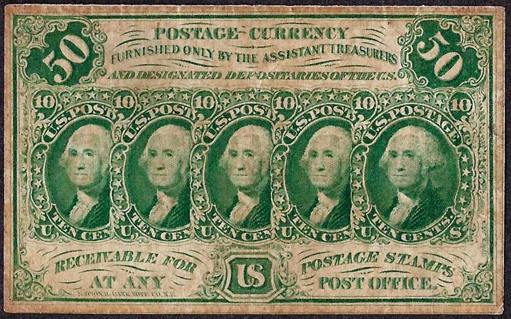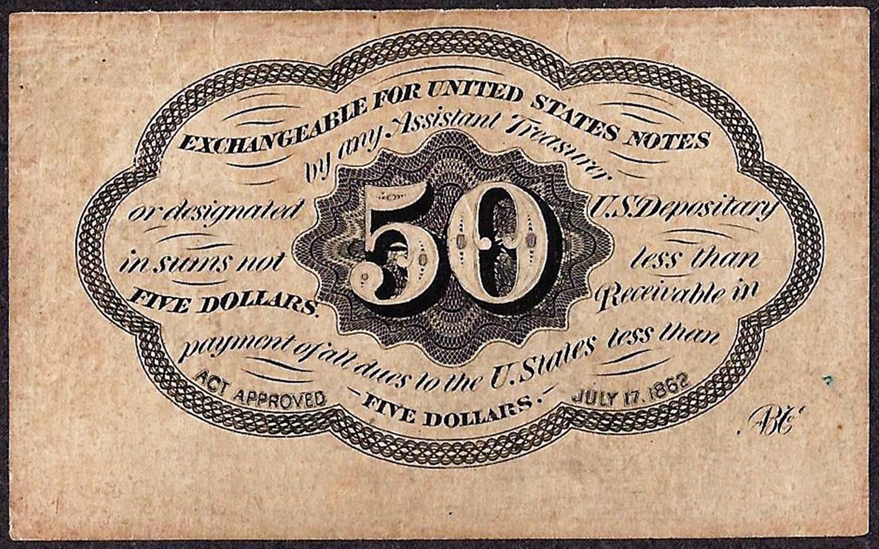 One July 17, 1862 Fifty Cents First Issue Fractional Currency Note.