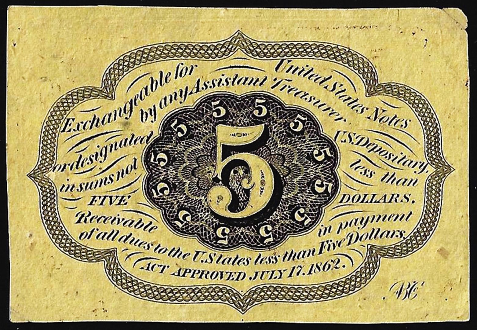 One July 17, 1862 First Issue Five Cent Fractional Currency Note.