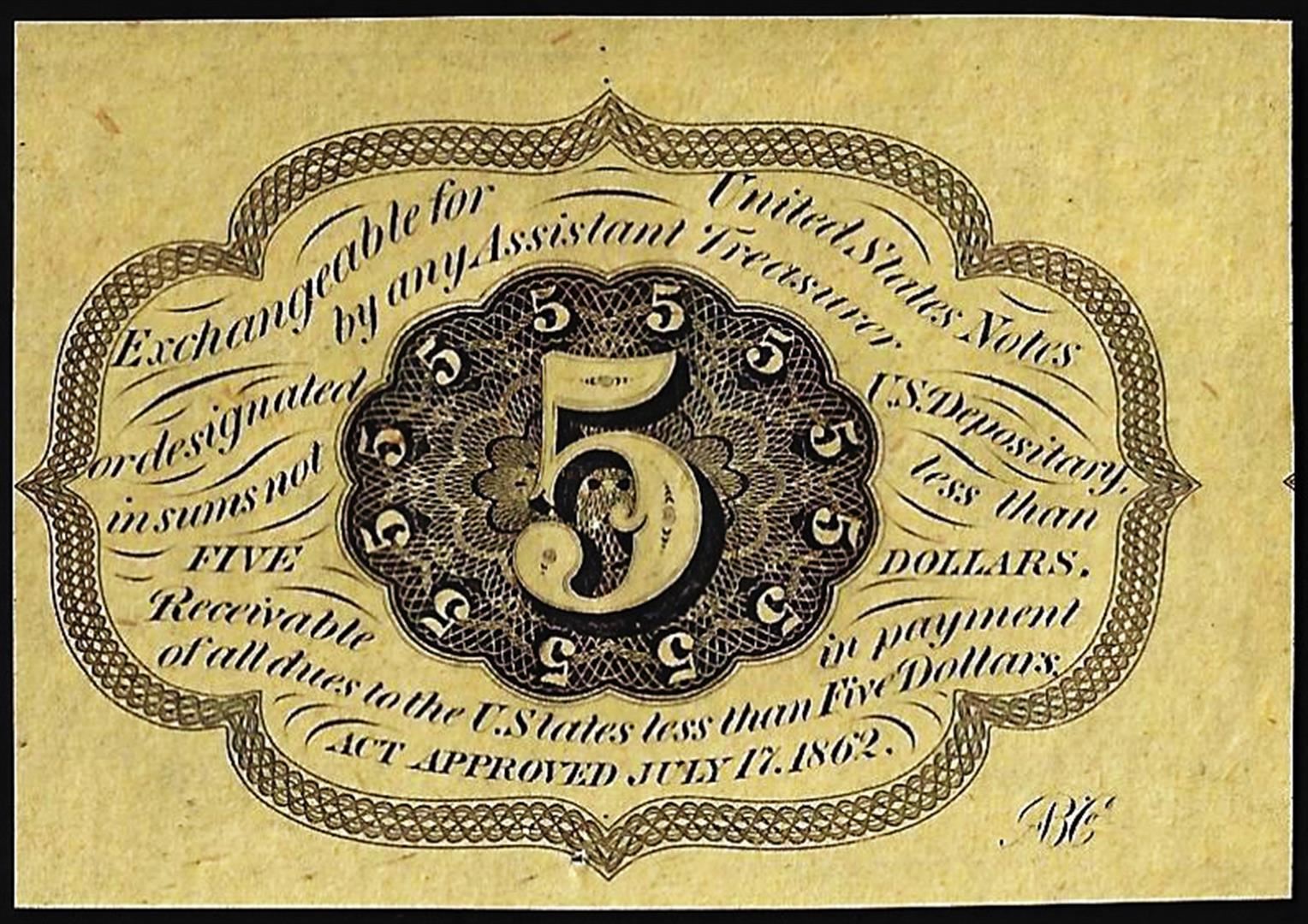 July 17, 1862 First Issue Five Cents Fractional Currency Note Pinhole