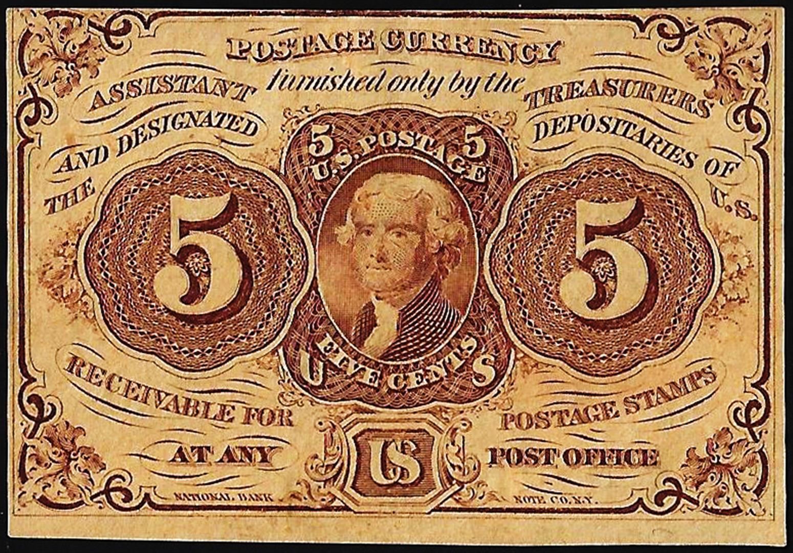 One July 17, 1862 First Issue Five Cents Fractional Currency Note.