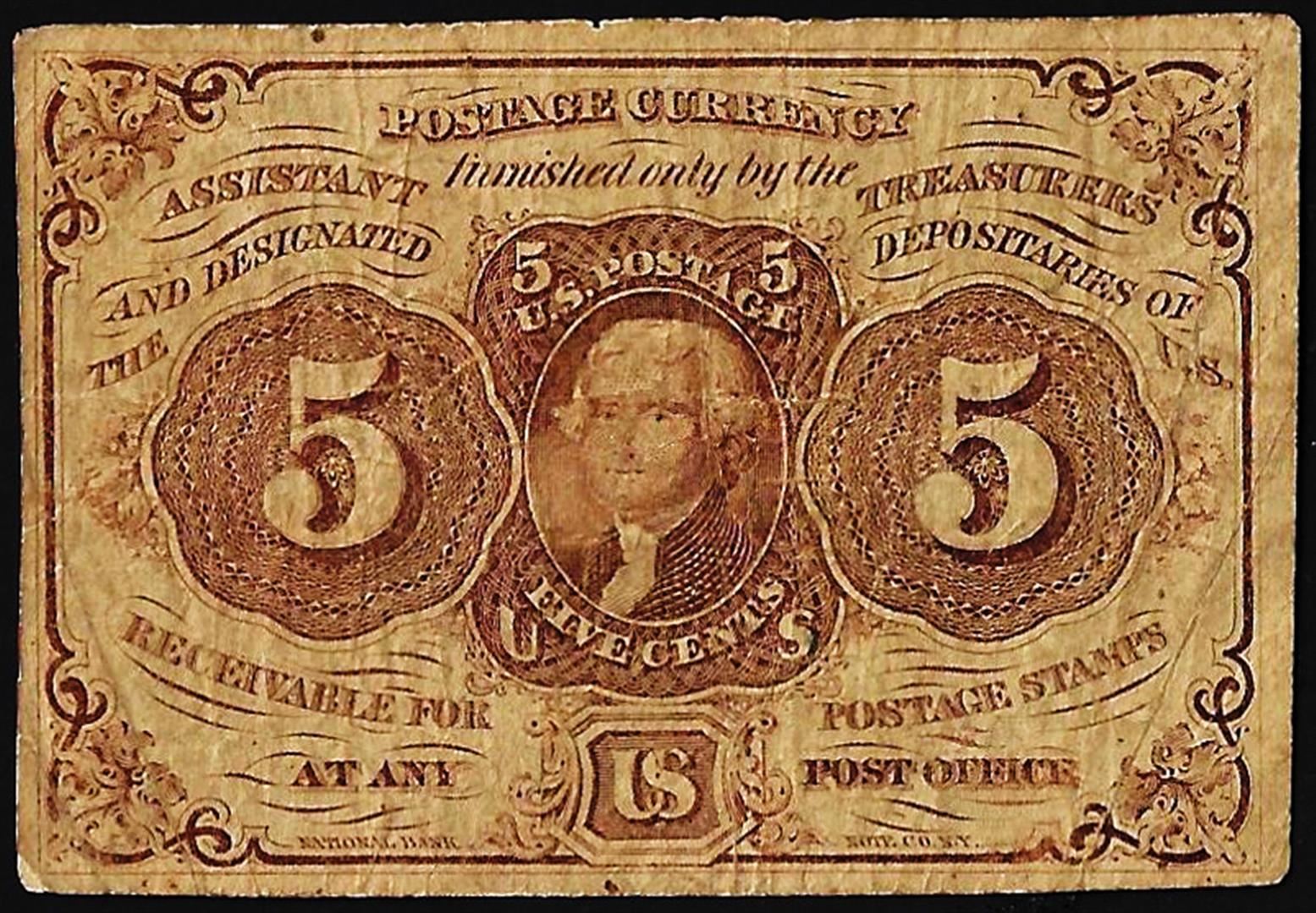 One July 17, 1862 First Issue Five Cents Fractional Currency Note.