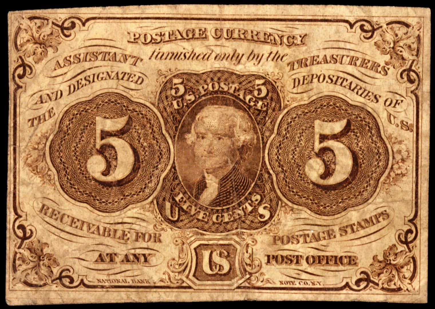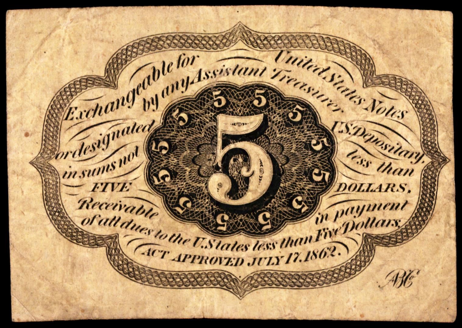 One July 17, 1862 First Issue Five Cents Fractional Currency Note.
