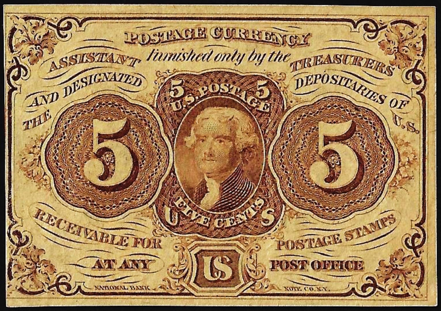 One July 17, 1862 First Issue Five Cents Fractional Currency Note.