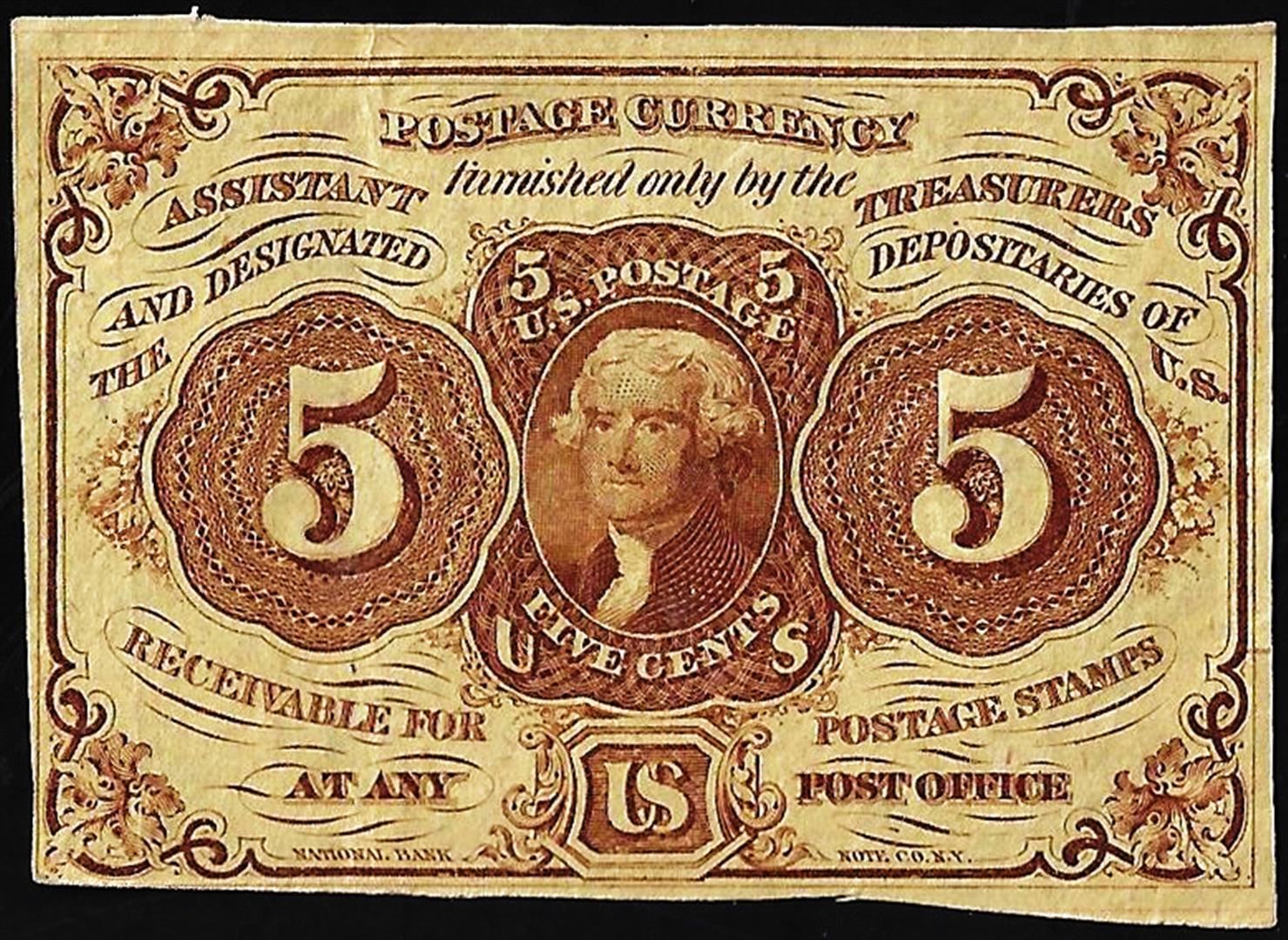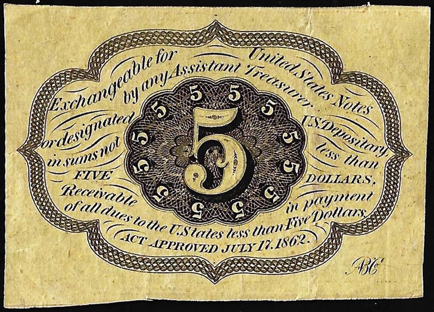 One July 17, 1862 First Issue Five Cents Fractional Currency Note.