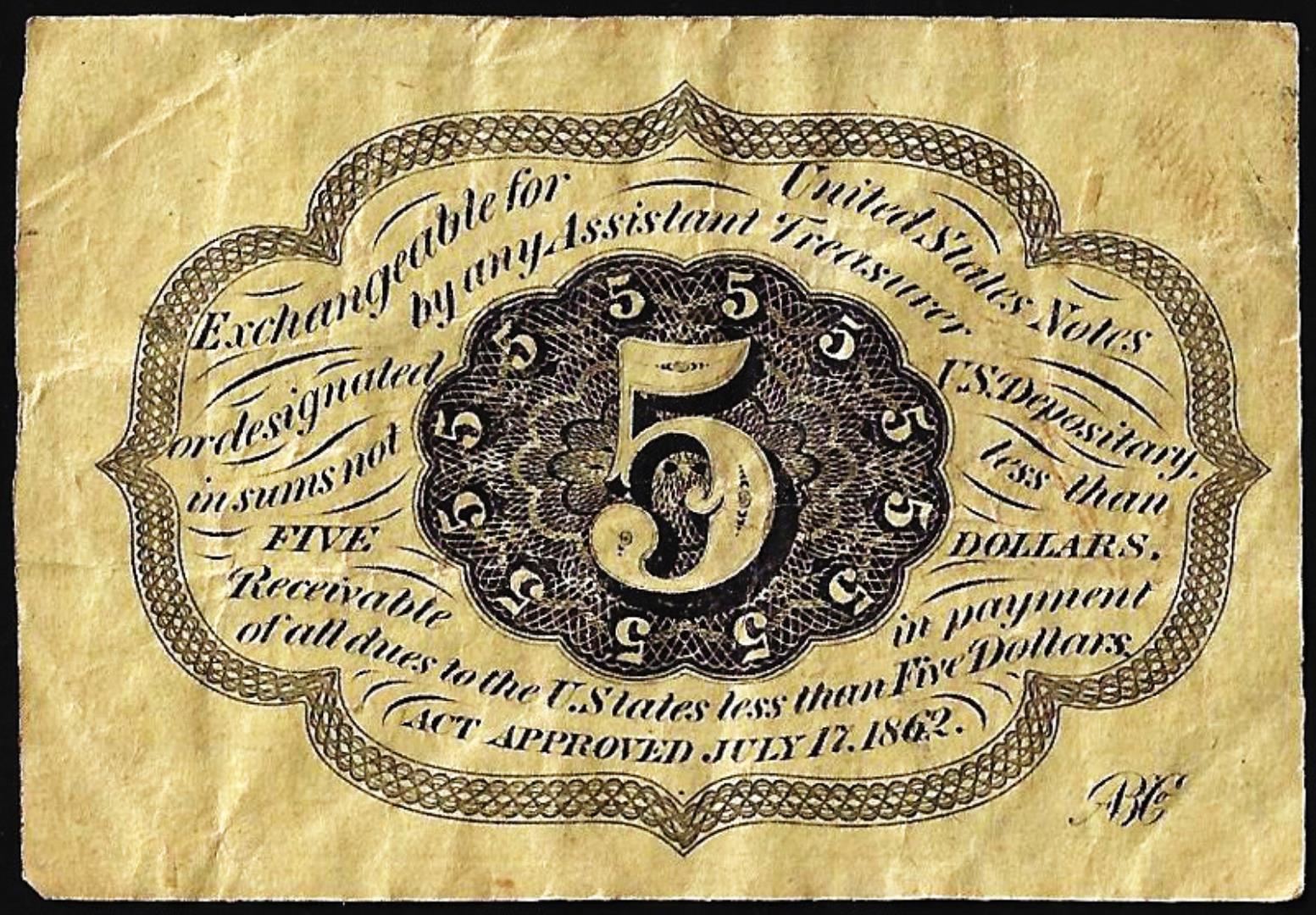One July 17, 1862 First Issue Five Cents Fractional Currency Note.