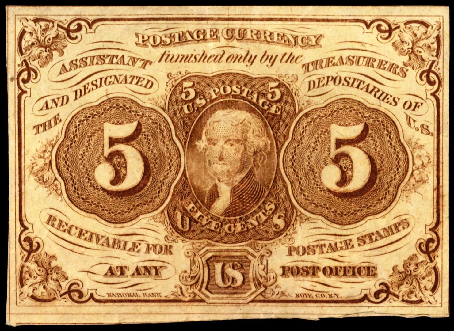 One July 17, 1862 First Issue Five Cents Fractional Currency Note.