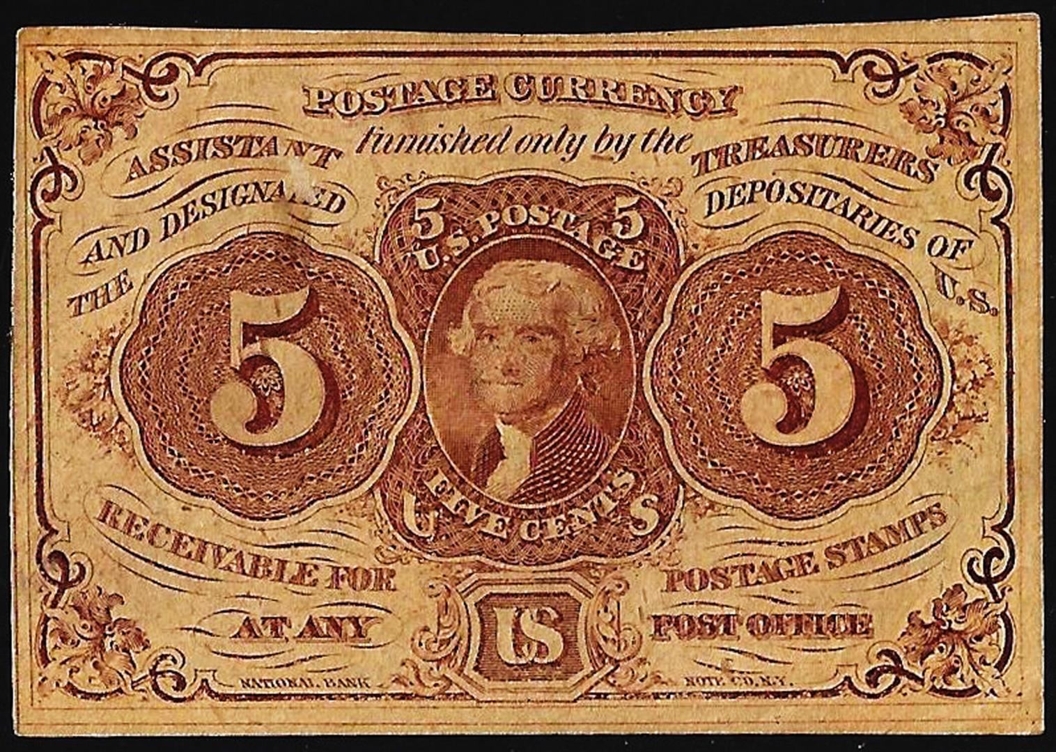 One July 17, 1862 Five Cent First Issue Fractional Currency Note.