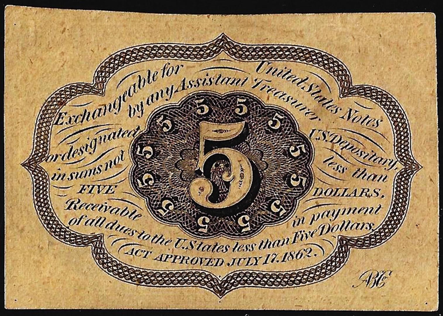 July 17, 1862 Five Cent First Issue Fractional Currency Note