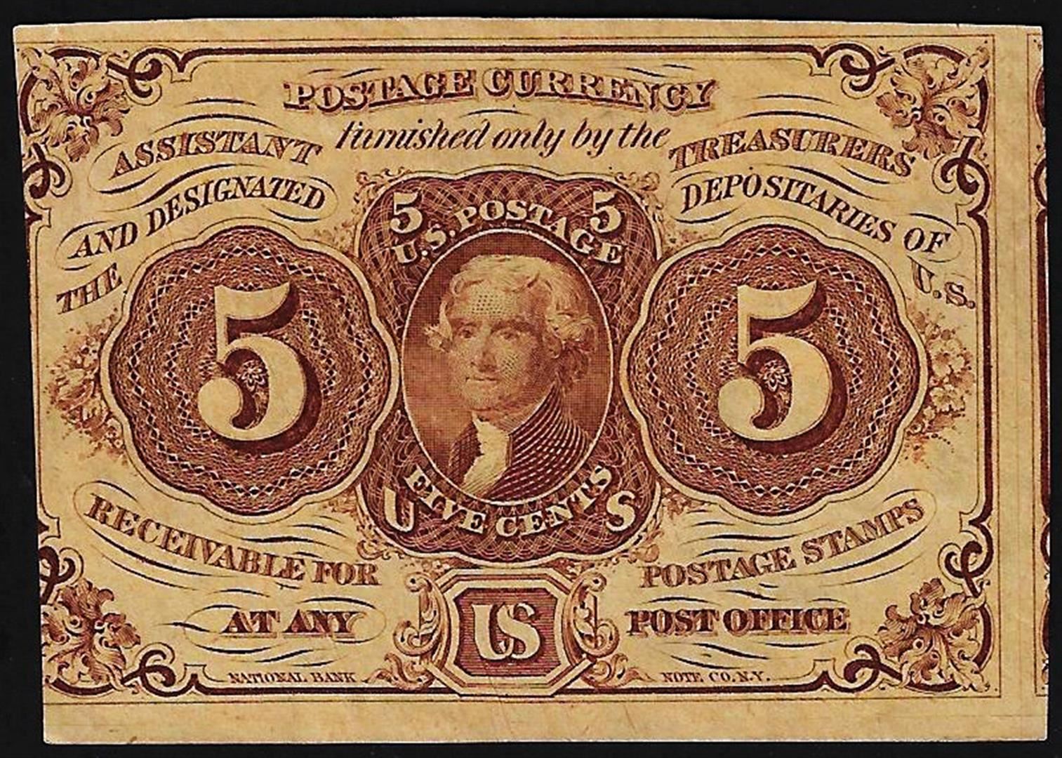 One July 17, 1862 Five Cents First Issue Fractional Currency Note.