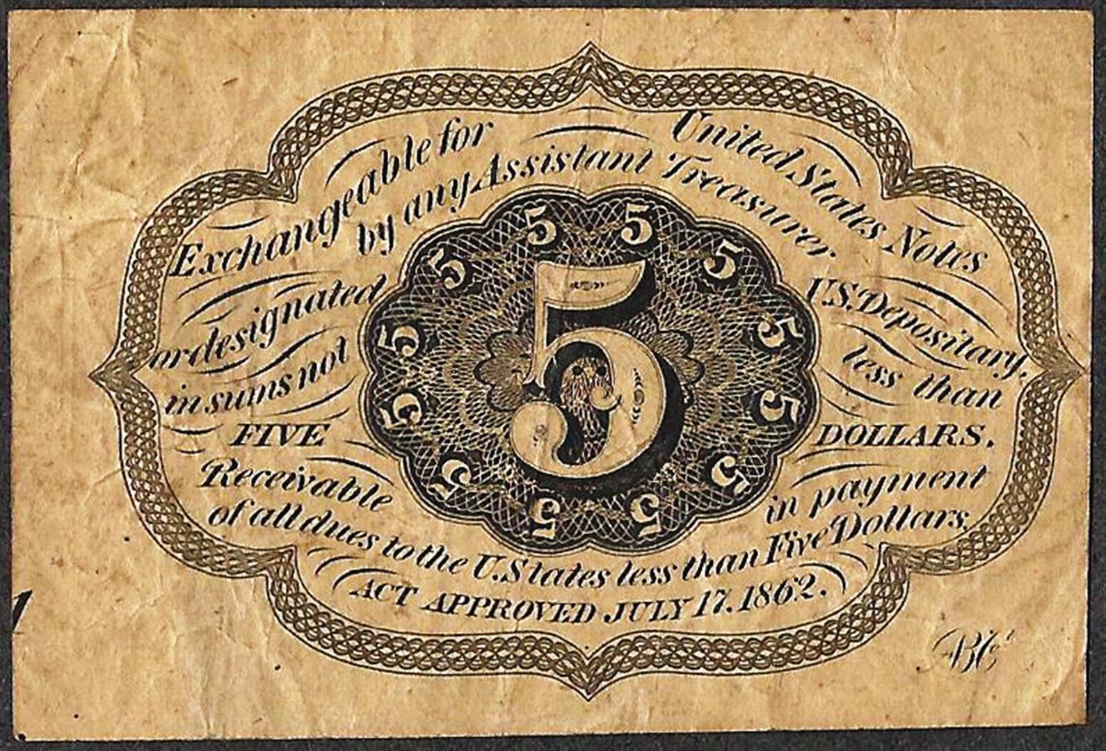 One July 17, 1862 Five Cents First Issue Fractional Currency Note.