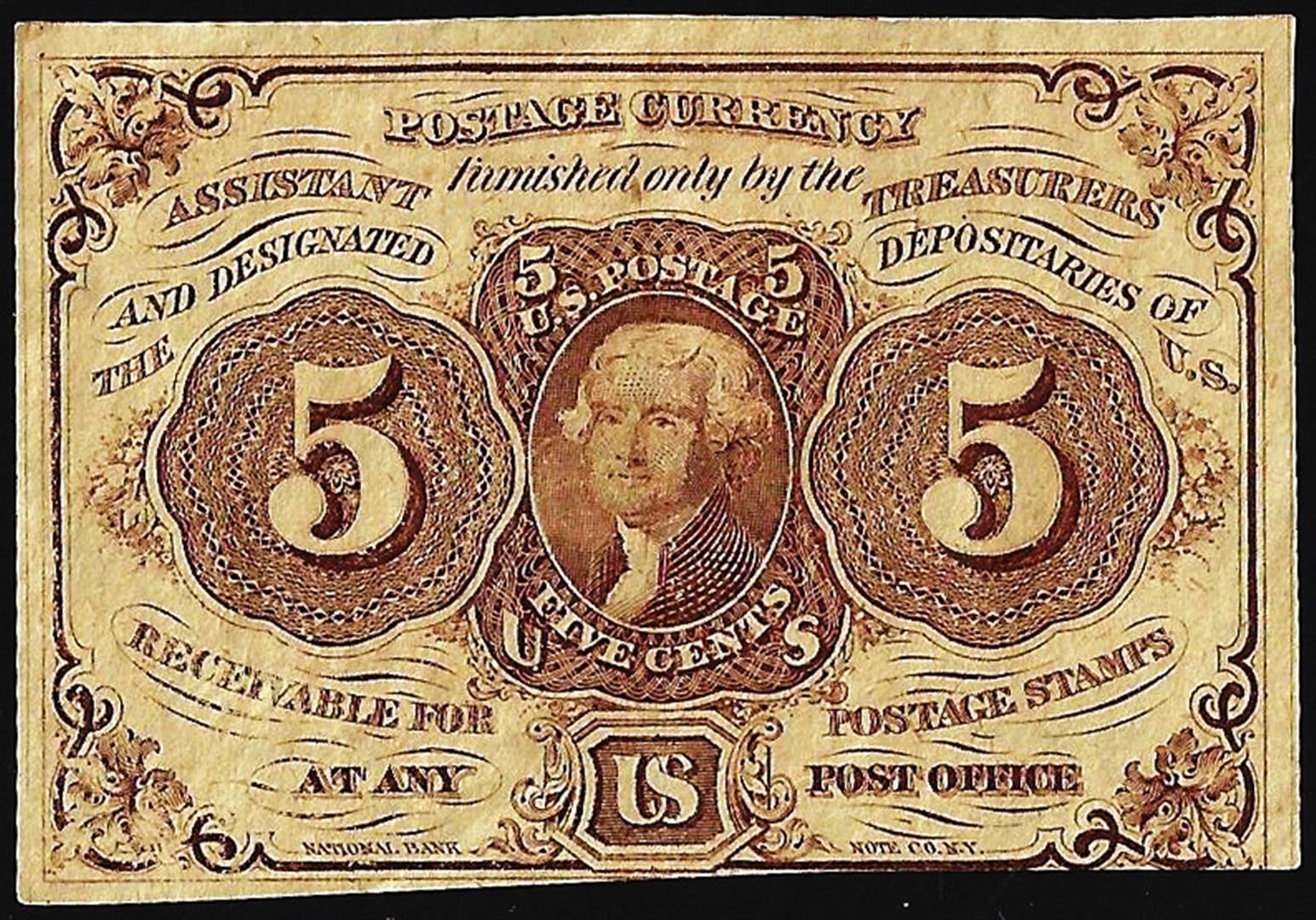 One July 17, 1862 Five Cents First Issue Fractional Currency Note.