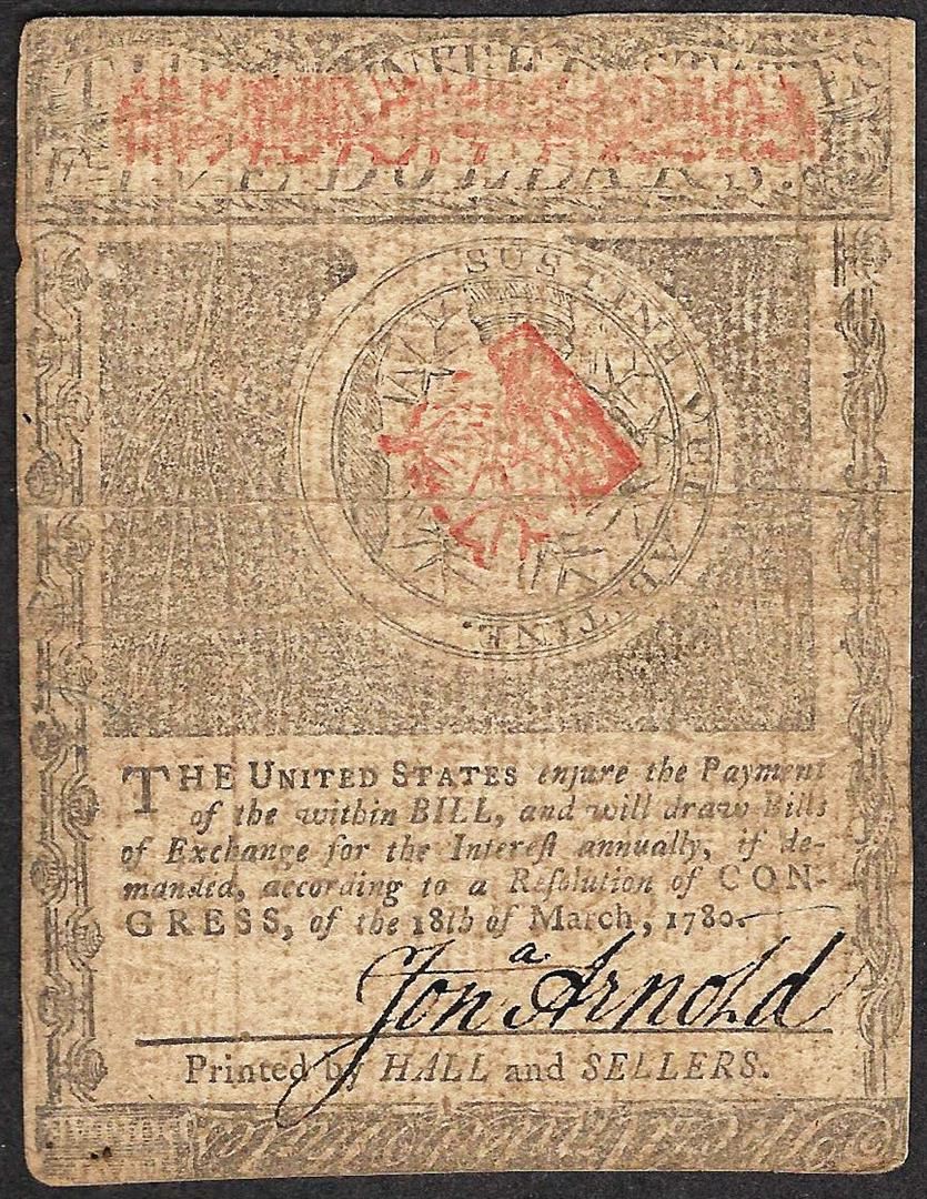 One July 2, 1780 $5 Rhode Island Colonial Currency Note.
