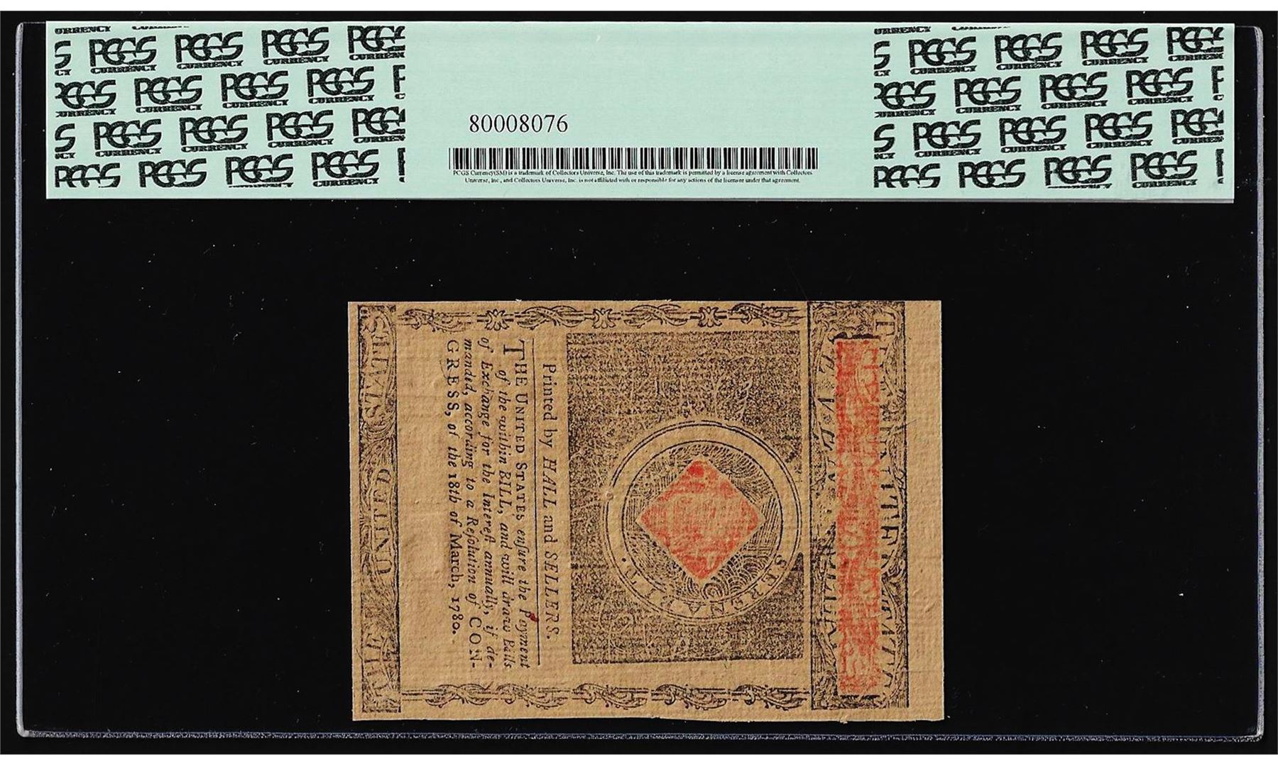 One July 2, 1780 $7 Rhode Island Colonial Currency Note PCGS Choice New 63PPQ. PCGS Graded.