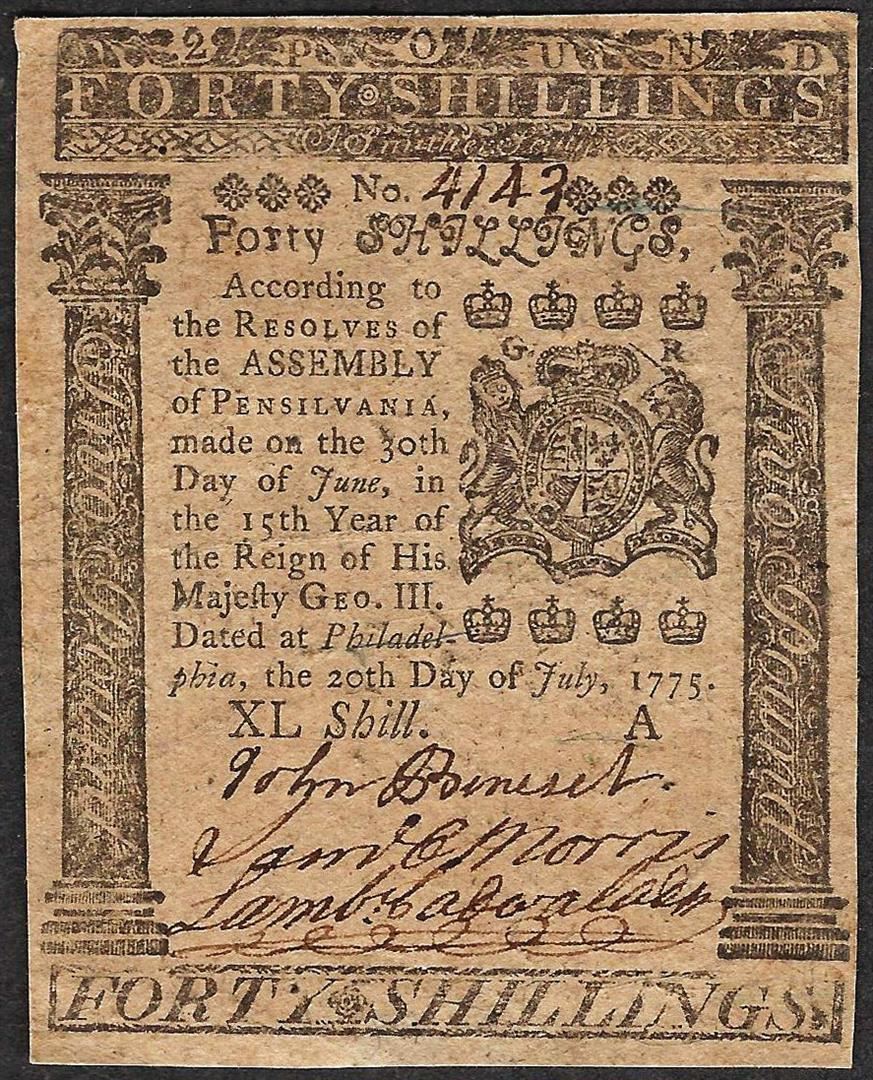 July 20, 1775 Forty Shillings Pennsylvania Colonial Currency Note