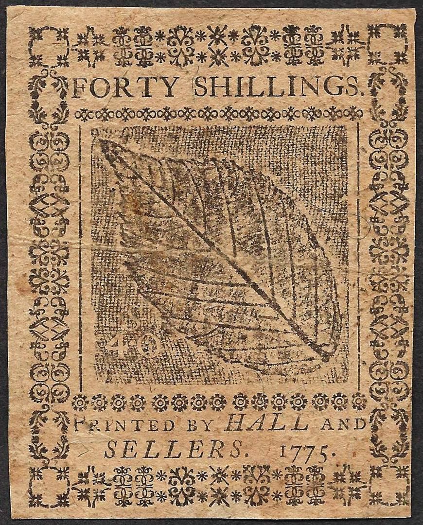 One July 20, 1775 Forty Shillings Pennsylvania Colonial Currency Note.