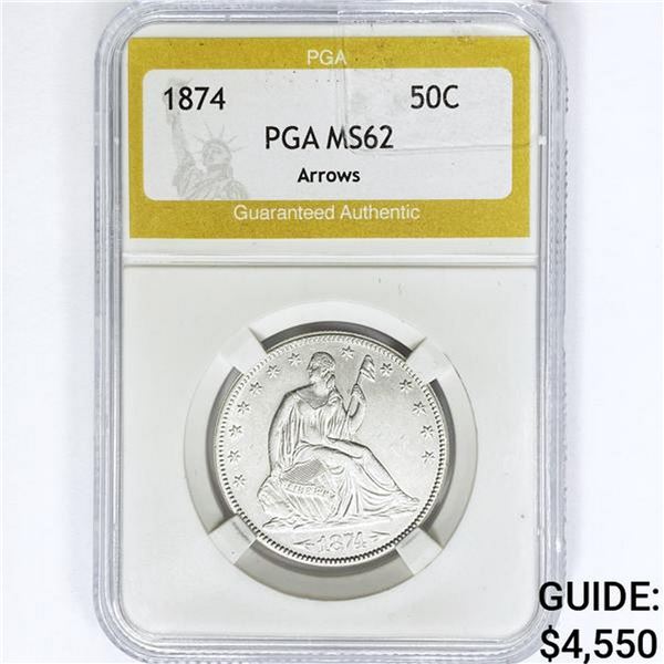 1874 Seated Liberty Half Dollar PGA MS62 Arws