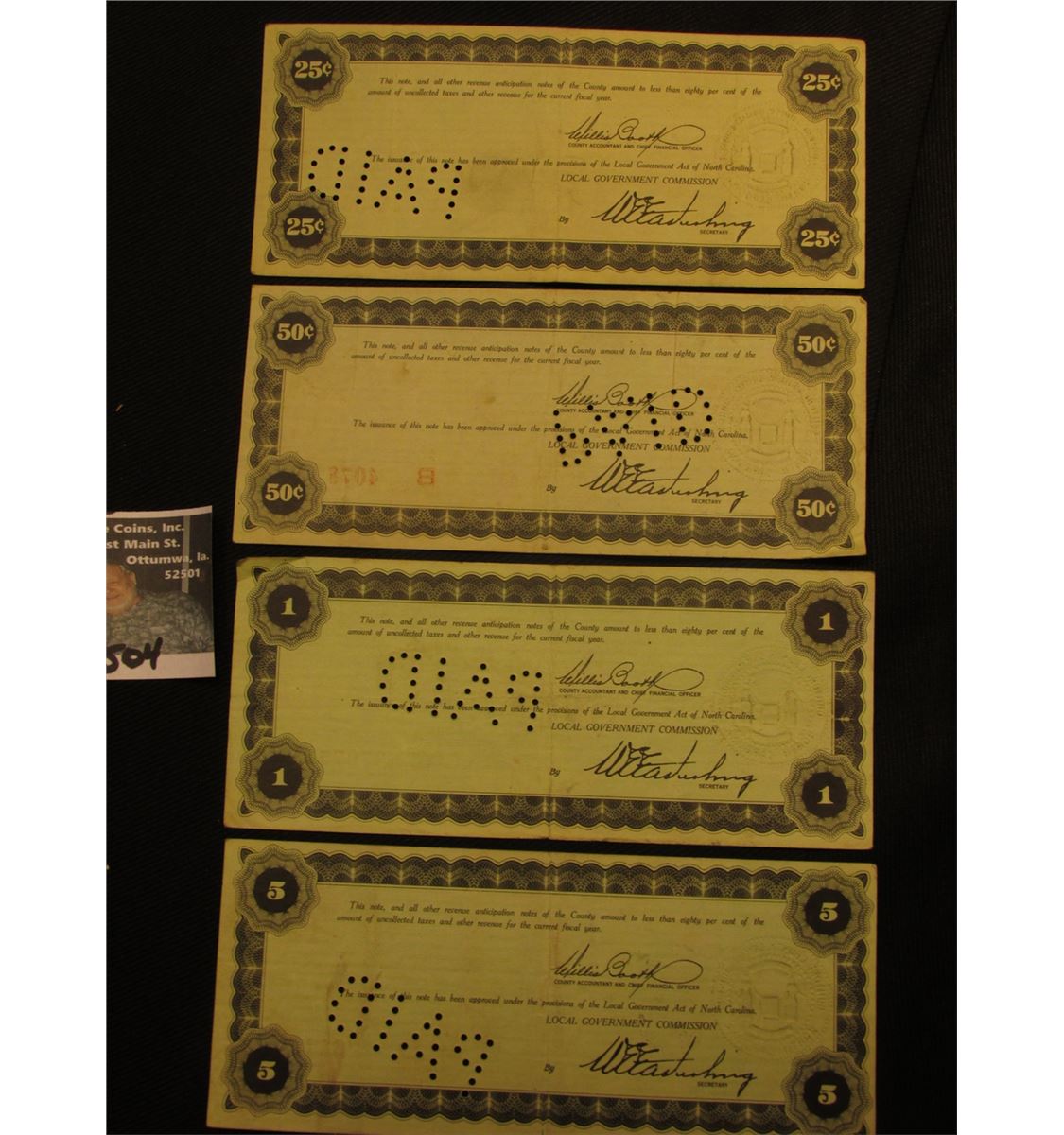 July 29, 1933 25c, 50c, $1, & $5 Depression Scrip "United States of America State of North Carolina
