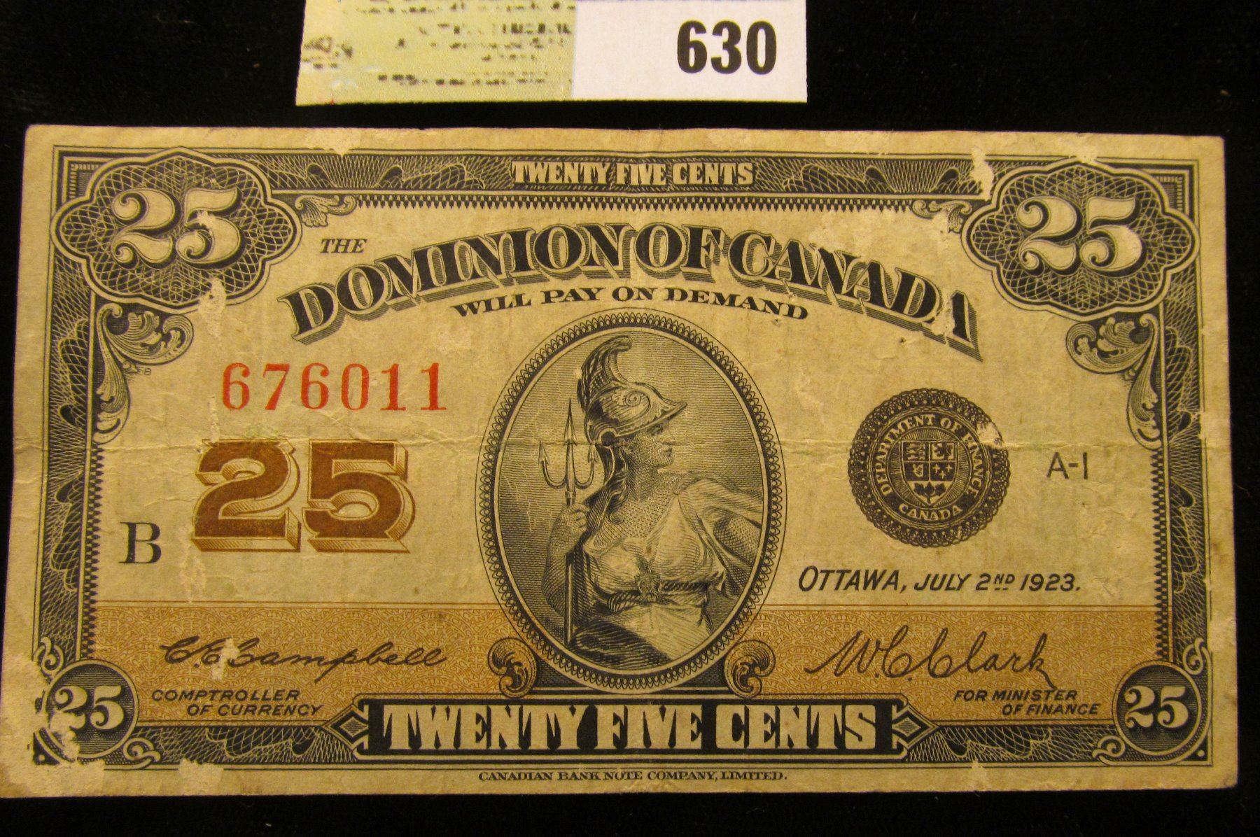 July 2nd, 1923 "Dominion of Canada" 25c Fractional Banknote.