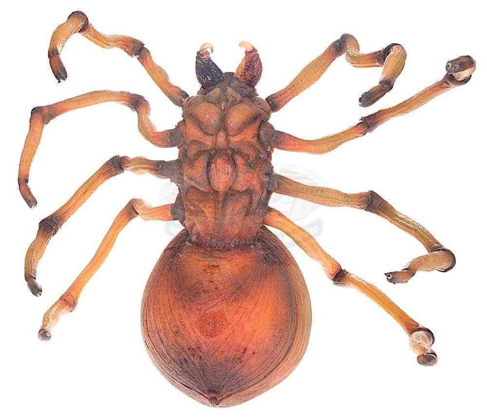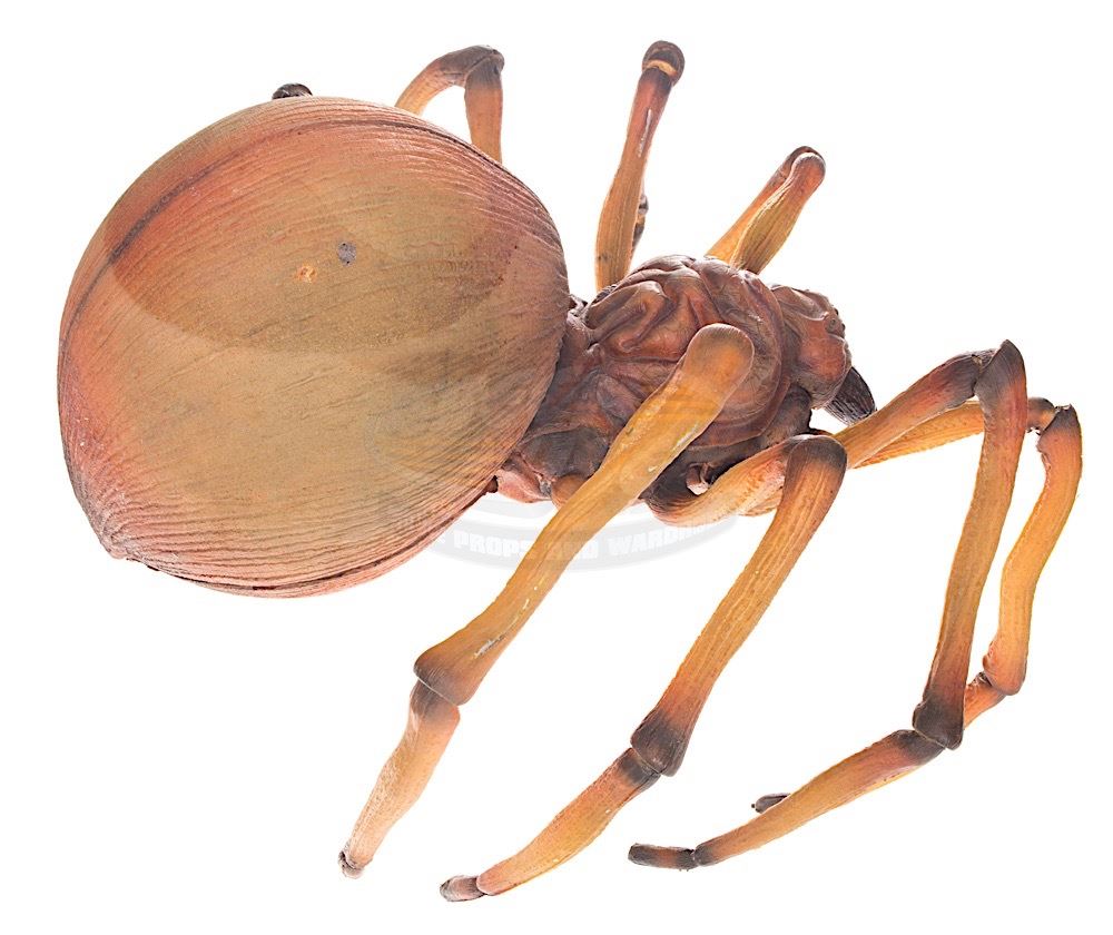 (TriStar Pictures, 1995) This large prop spider was custom-made by the production for use during filming. The unique prop is made of foam over a metal frame and features a custom airbrushed finish. The spider stands an impressive 15" tall x 16" long x 20" wide. This incredible prop showcases the magical forces unleashed by the board game, "Jumanji" and the talent of the film's effects crew.