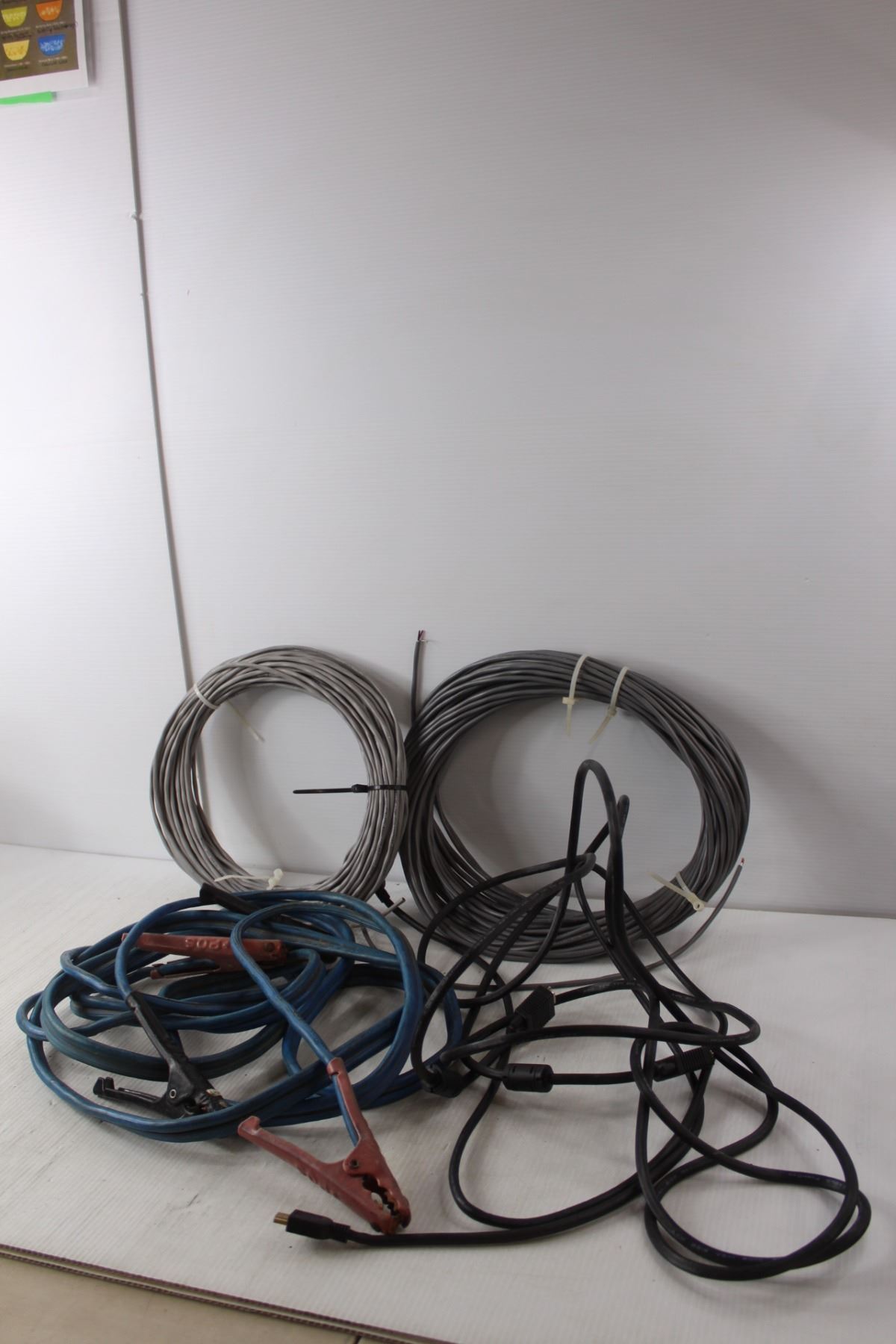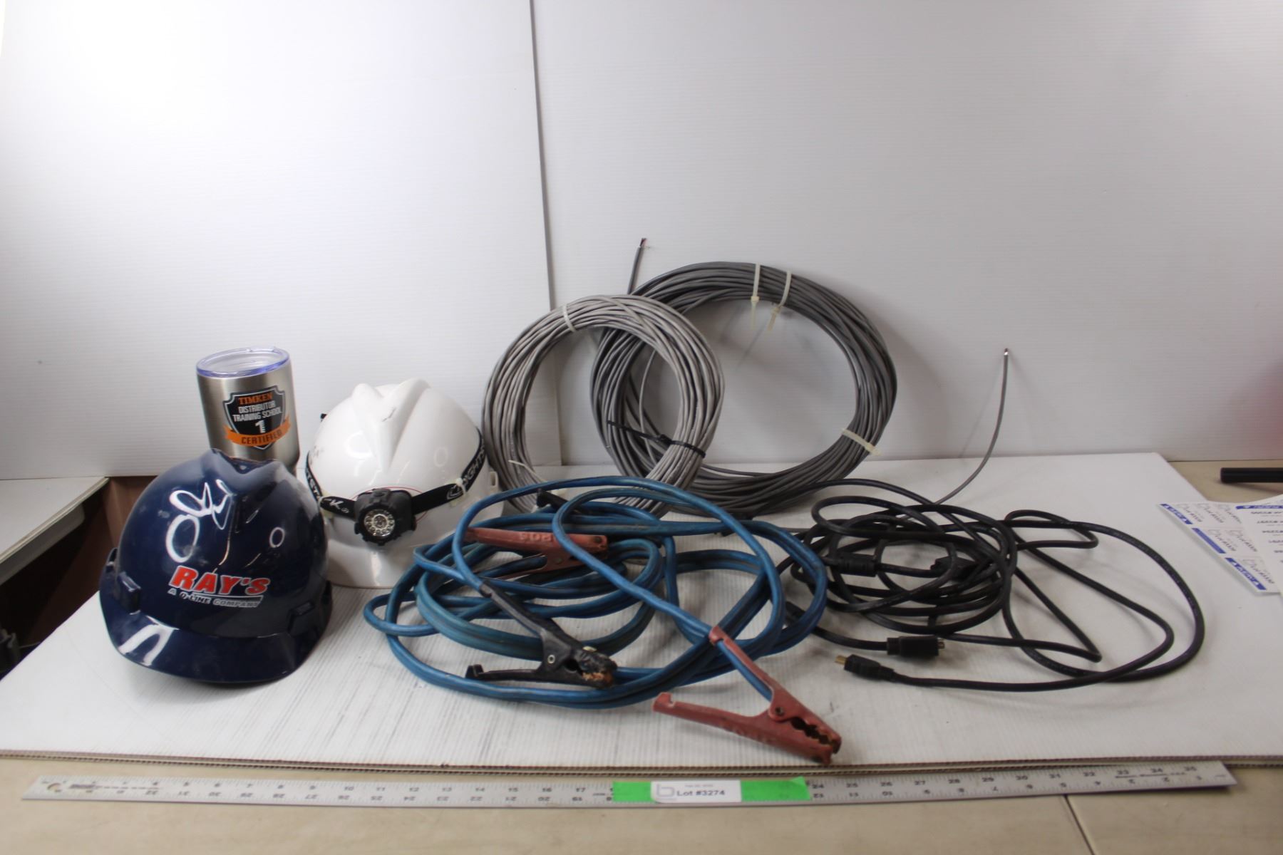 Jumper Cables, (2) Safety Helmets, HDMI Cord, Misc.