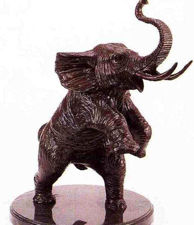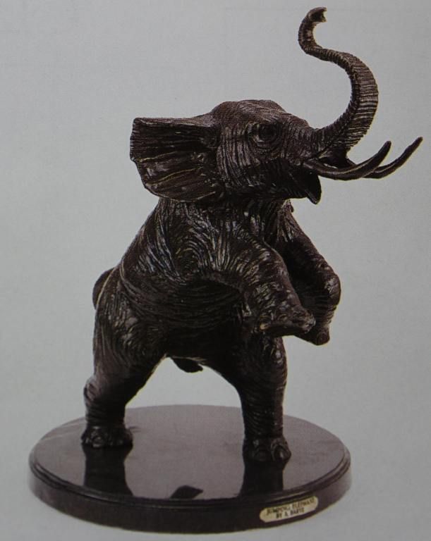 "Jumping Elephant" Bronze Sculpture - After Barye - Museum Brown Finish - Mounted On A Fine Italian Marble Base - Beautifully Detailed - Signed - Mint Condition - 27"H X 16"W - Lost Wax Cast Bronze