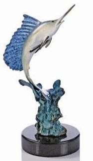 Jumping Sailfish Bronze Sculpture - 7"H 4"W 3 "D - Great Attention To Detail - Beautiful Finish - Lost Wax Cast