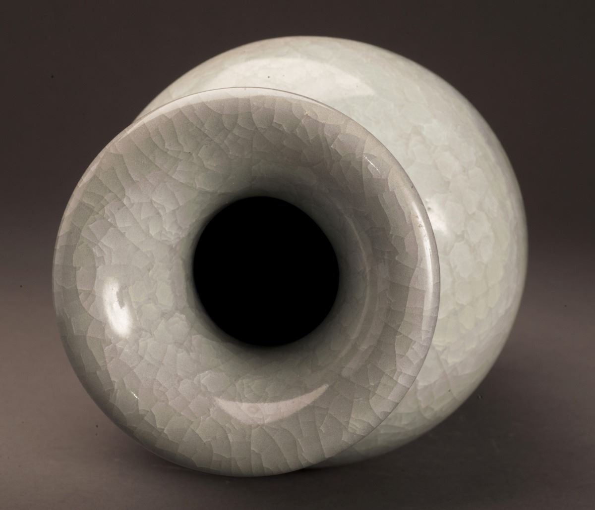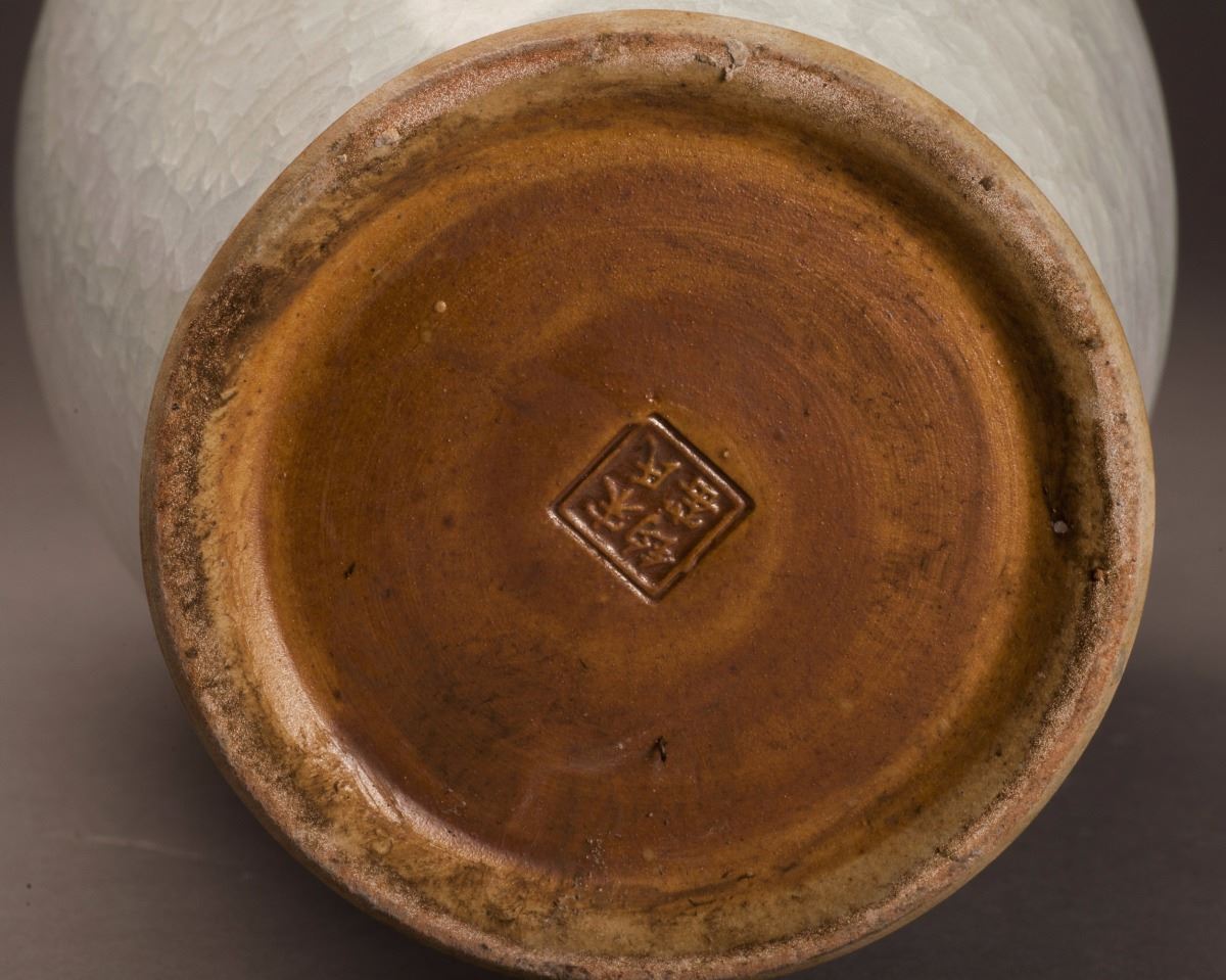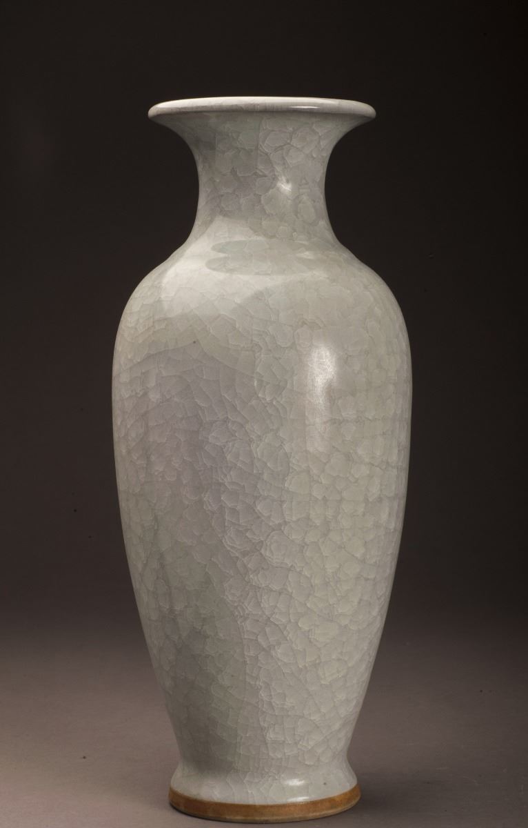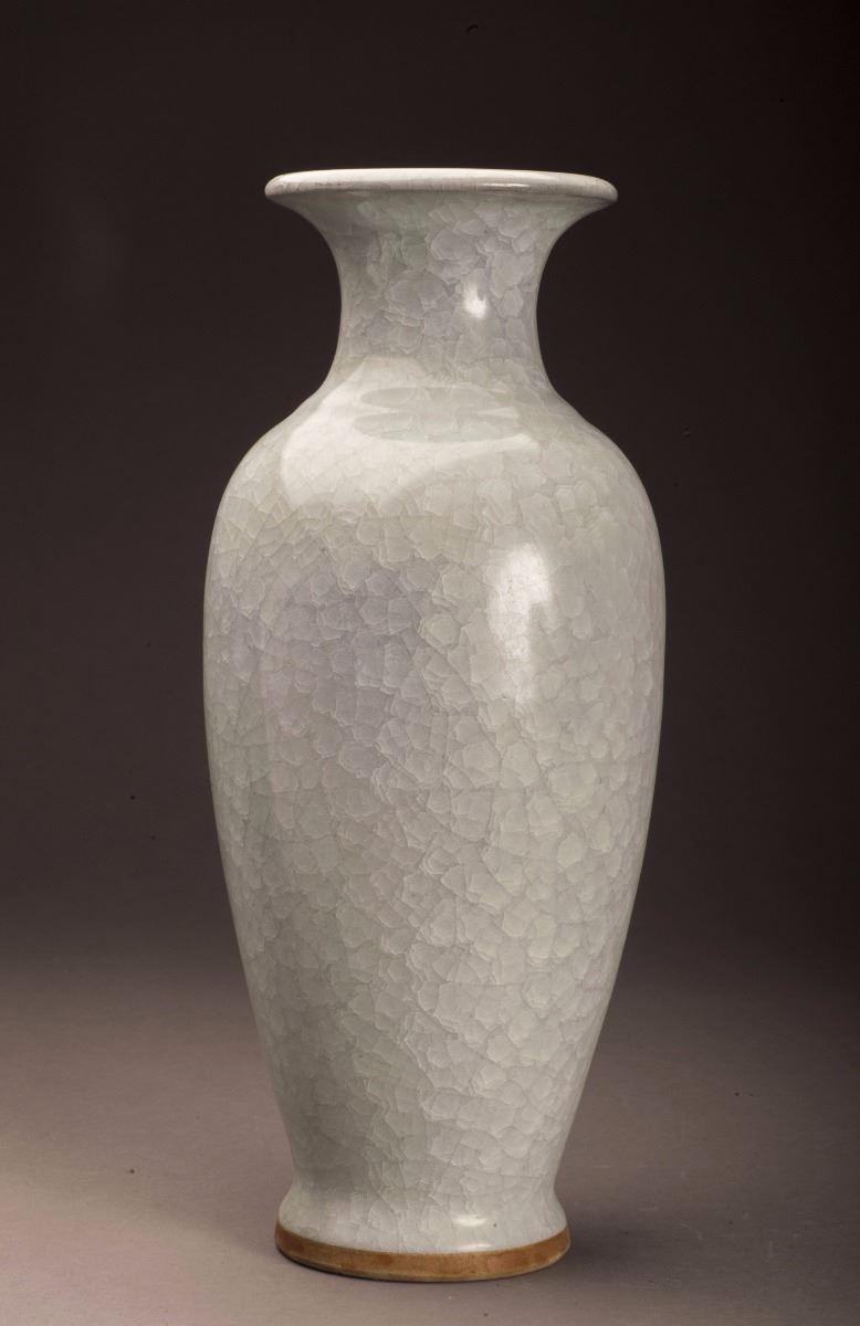 Within The Alternative White Tone Throughout, This Fine Jun-ware Porcelain Vase In Good Condition. The Broad Shoulder Raised To The Long And Thin Body.