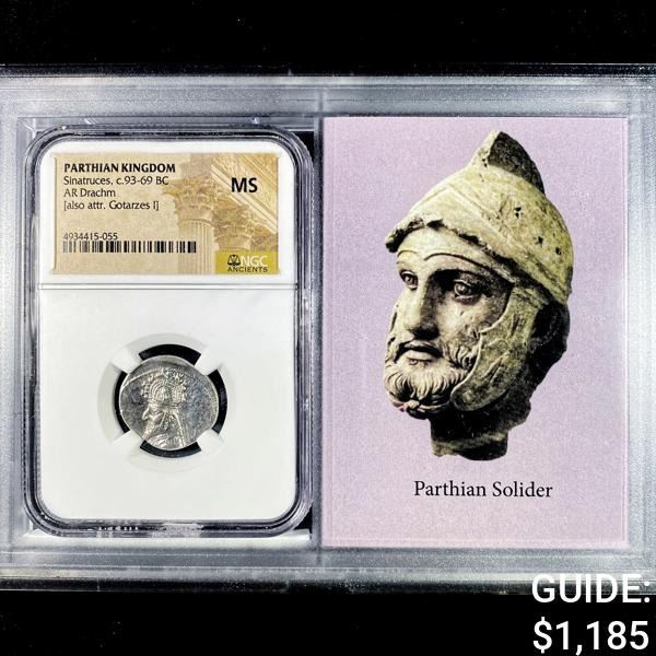 c.93-69 BC Parthian Kngdm AR Drachm NGC - MS