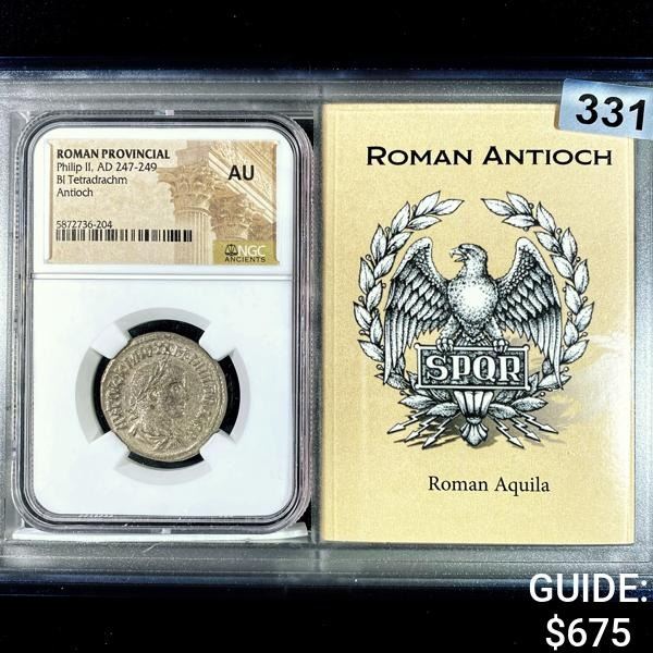 247-249 AD Rmn Provincial BL Tetradrachm NGC - AU