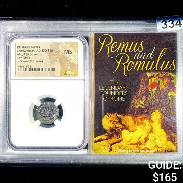 330-340 AD Rmn Emp AE3/4 BL Nummus NGC - MS