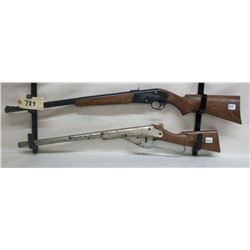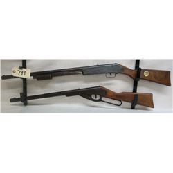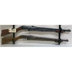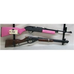 Daisy model 94 bb gun and a Crosman 760 .177 pellet or bb guns. Crosman has factory pink stocks.
