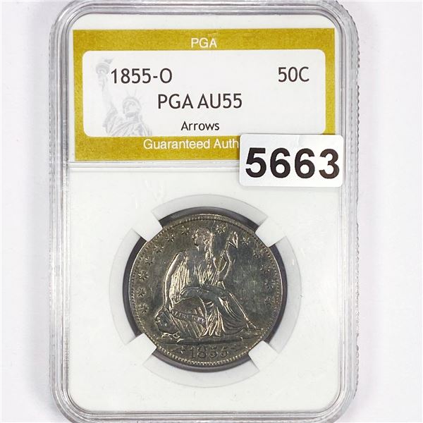 1855-O Arrows Seated Liberty Half Dollar PGA -