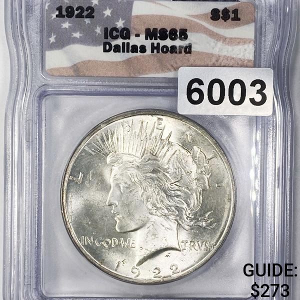 1922 Dallas Hoard Silver Peace Dollar ICG - MS65