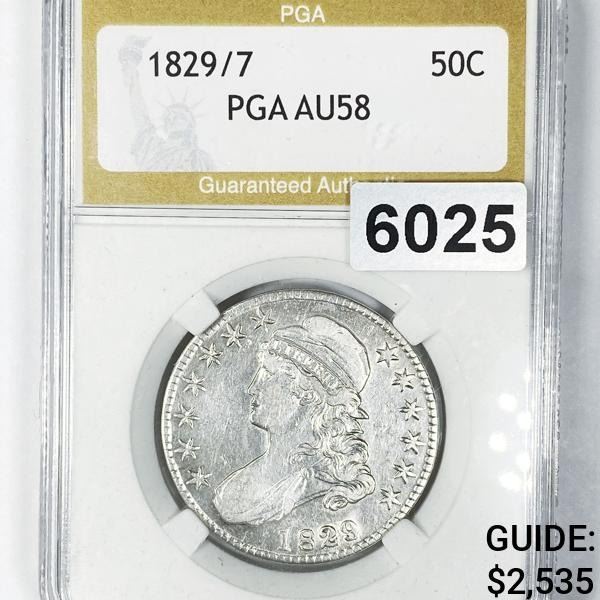 1829/7 Capped Bust Half Dollar PGA - AU58